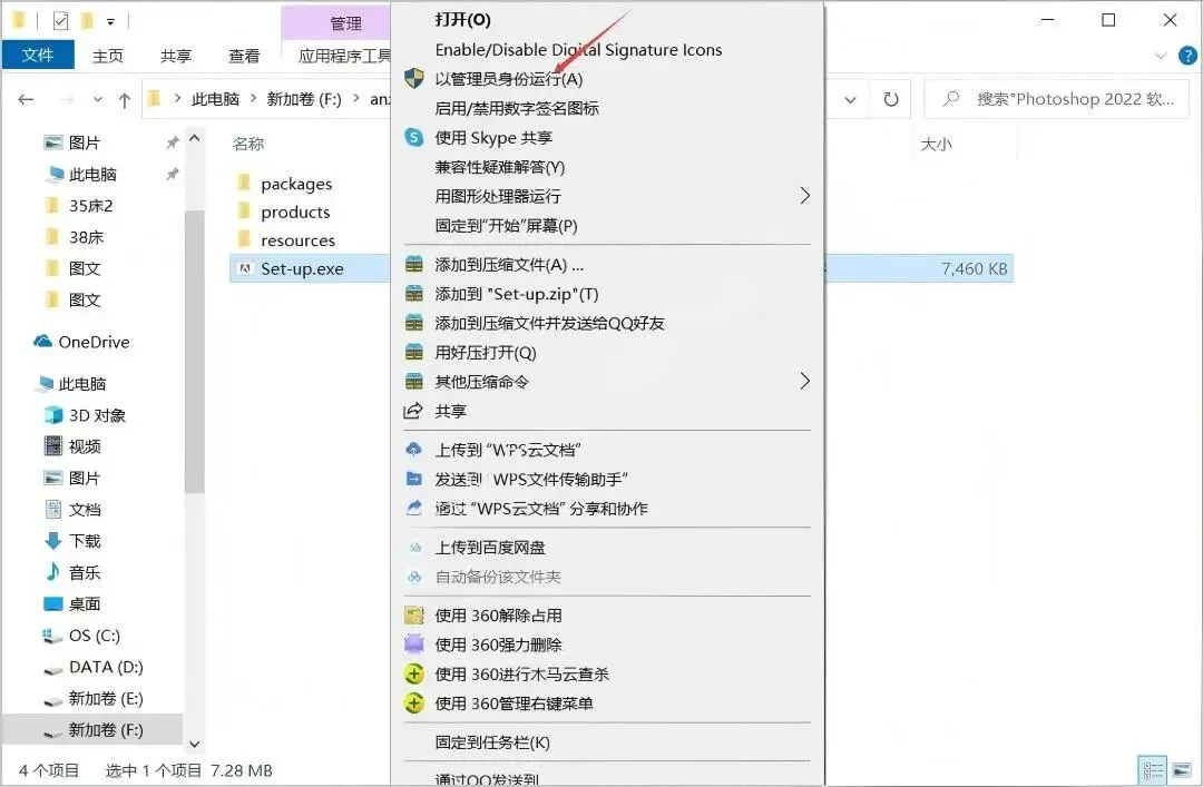 第二步:右击,以管理员身份运行”Set-up.exe软件包”。