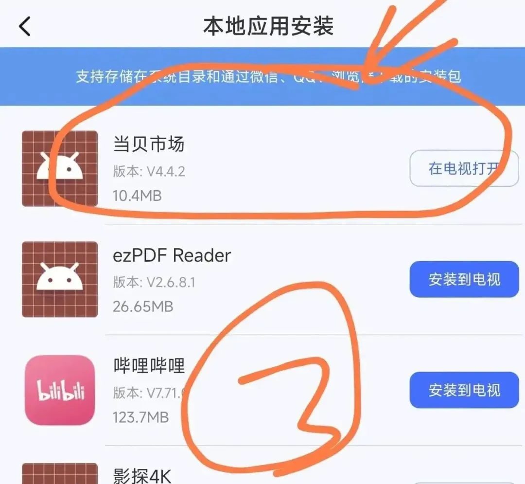 用手机浏览器下载好想安装到电视的 APP,再打开小米电视助手,依次点击应用管理 — 管理 — 本地应用管理,就能找到刚下载的软件,点击安装到电视📺