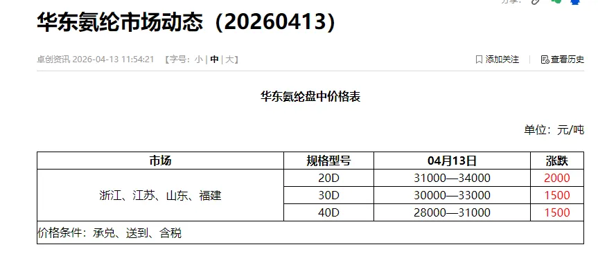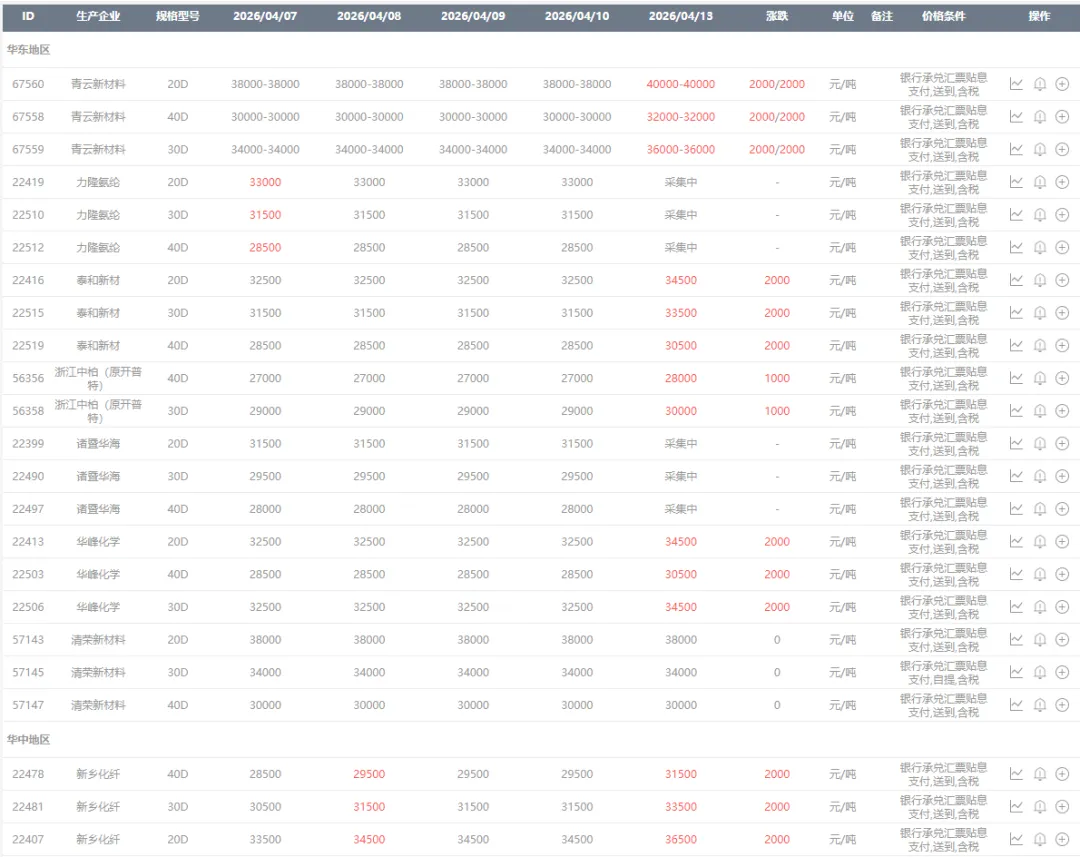 今天氨纶全线涨价2000元,40D突破三万大关