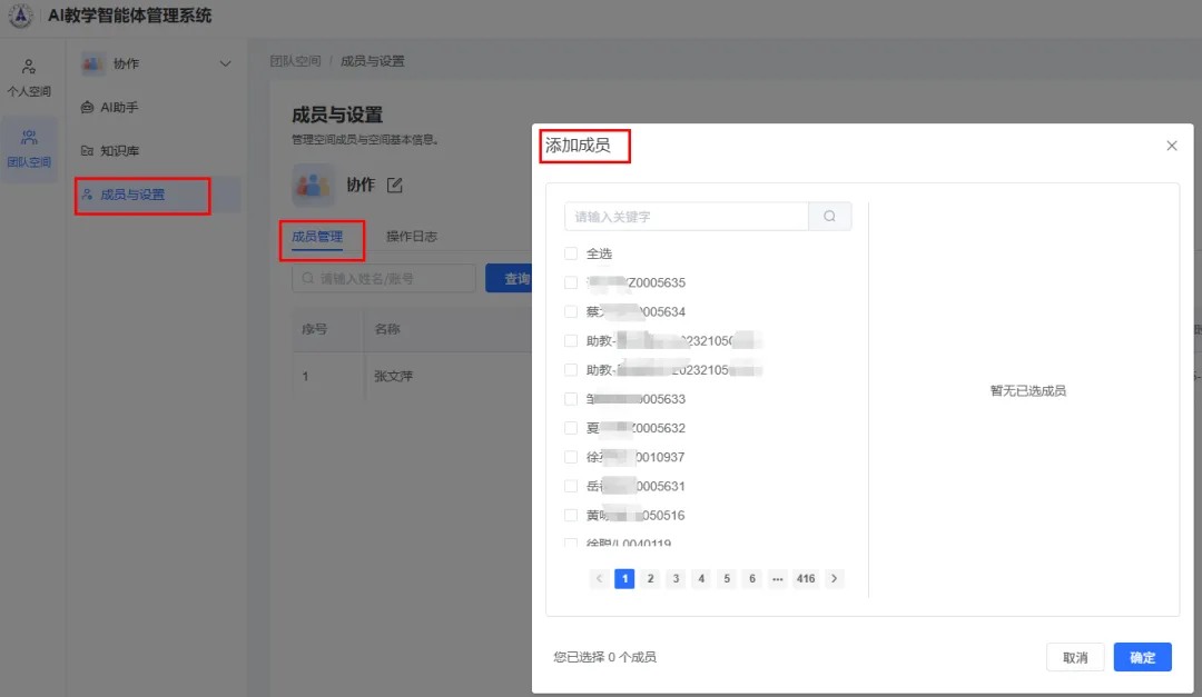 管理员可邀请其他教师或管理员加入团队,同时支持为成员设置角色 —— 既可为核心协作成员分配管理员权限,也可根据需求设置普通成员。