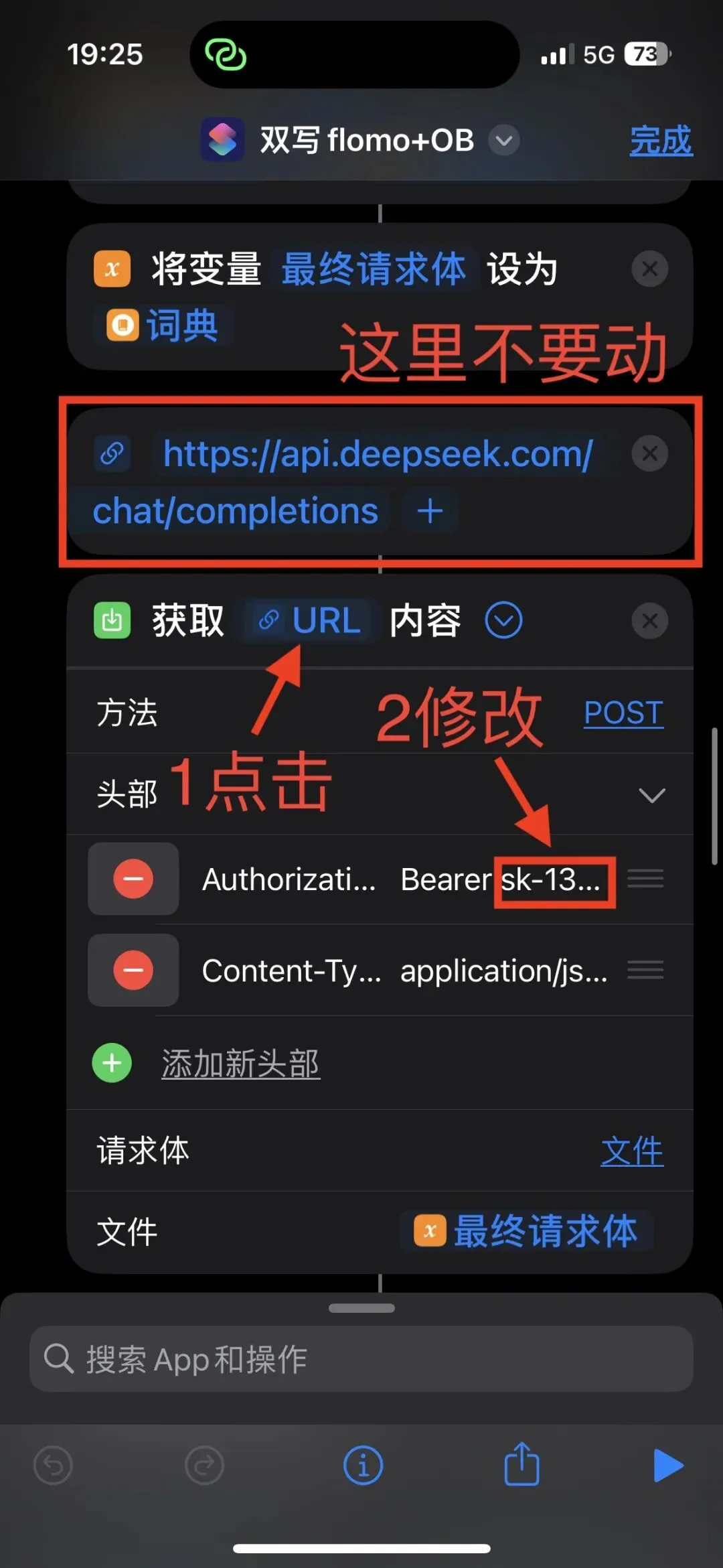 3.仅修改“sk-13”开头的Deepseek的API,“Bearer”和“sk”之间有一个空格,不要误删了。