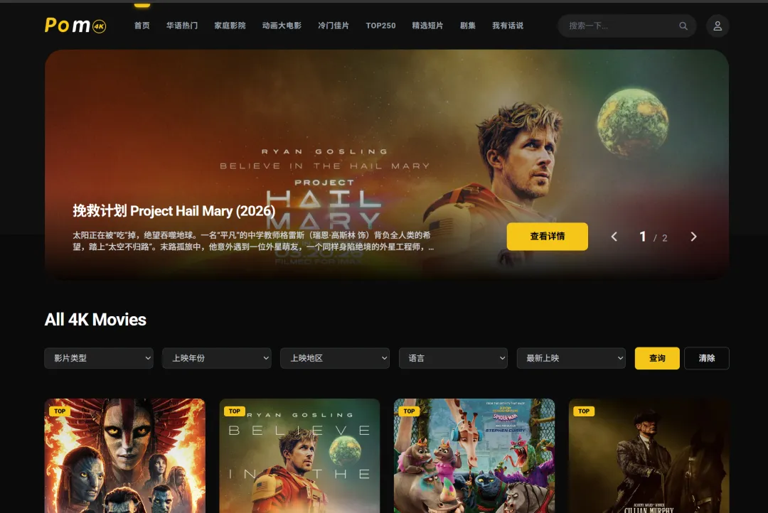 Pomo4K——一个专注于4K蓝光原盘资源的电影下载站。如果你追求画质、喜欢收藏高码率电影,或者想给家庭影院找点真4K片源,这个站值得收藏。