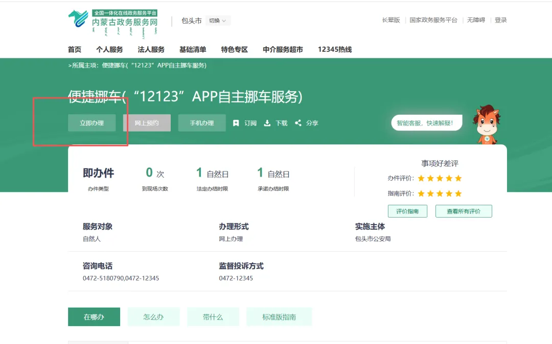 6.看事项办理详情,点击“立即办理”,进行业务办理