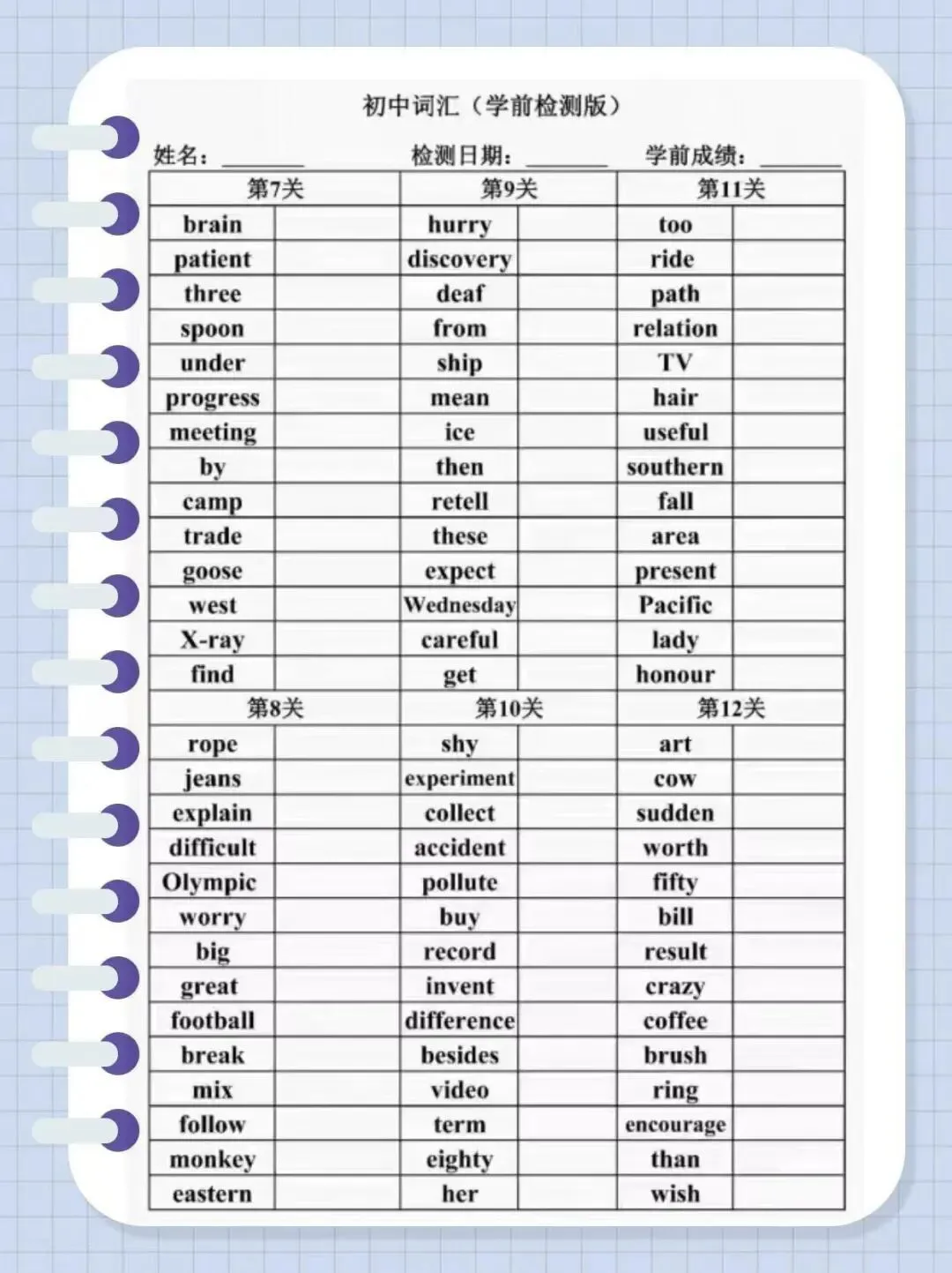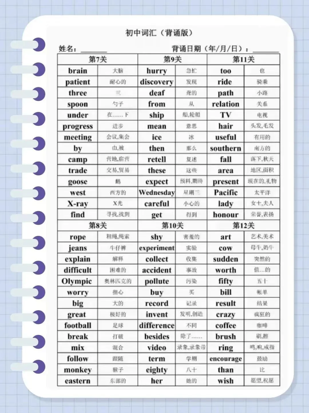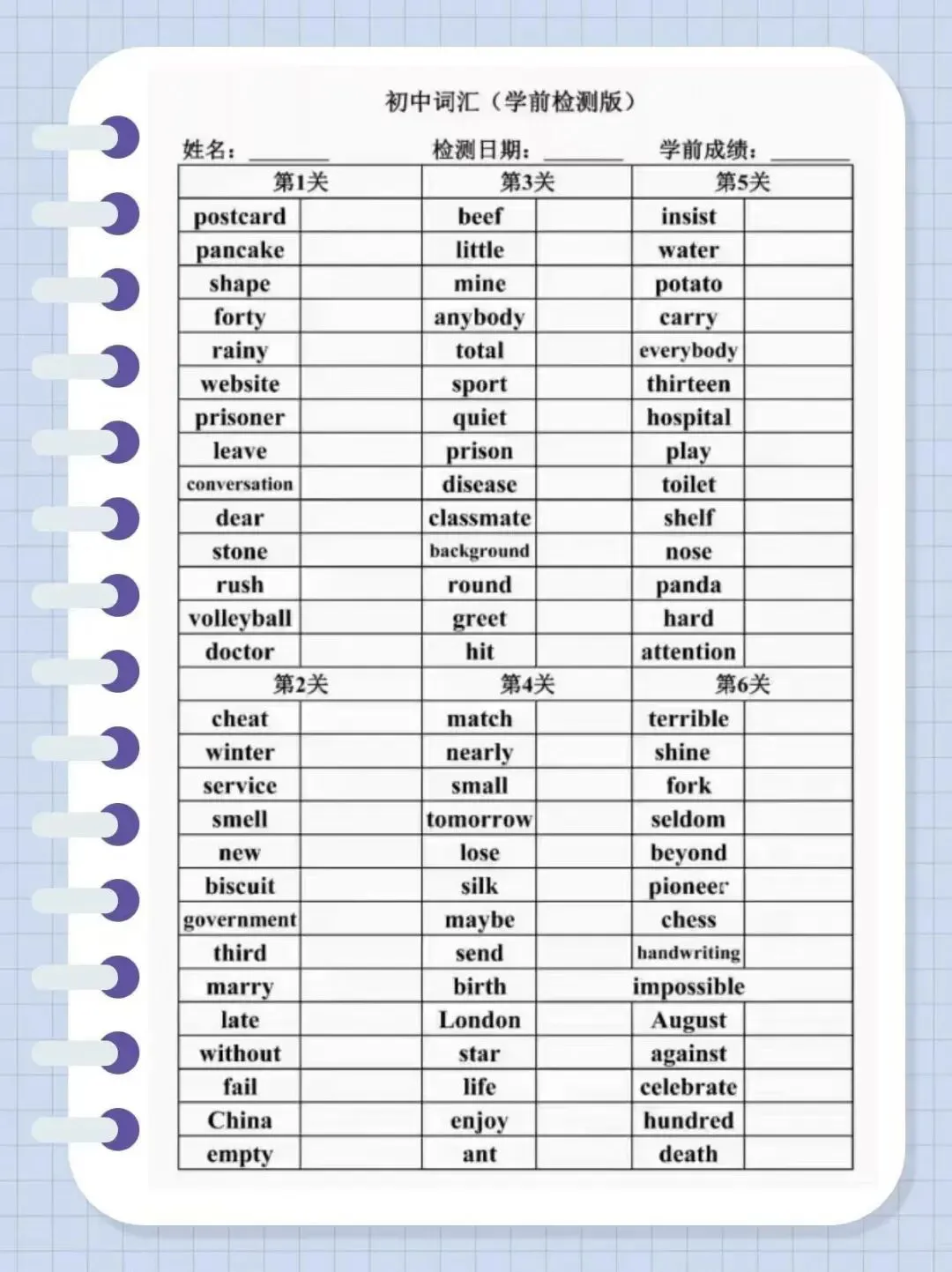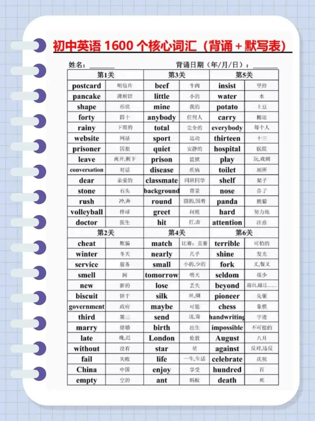 想让孩子高效攻克中考英语词汇?这份由资深教师精心打磨的1600核心词汇资料,紧扣考纲,科学分关,每关15词,搭配背诵默写表,记测结合。每天轻松打卡,帮孩子夯实基础、减少无效记忆,提升单词掌握效率。助力孩子稳步提升英语实力,从容备战中考!