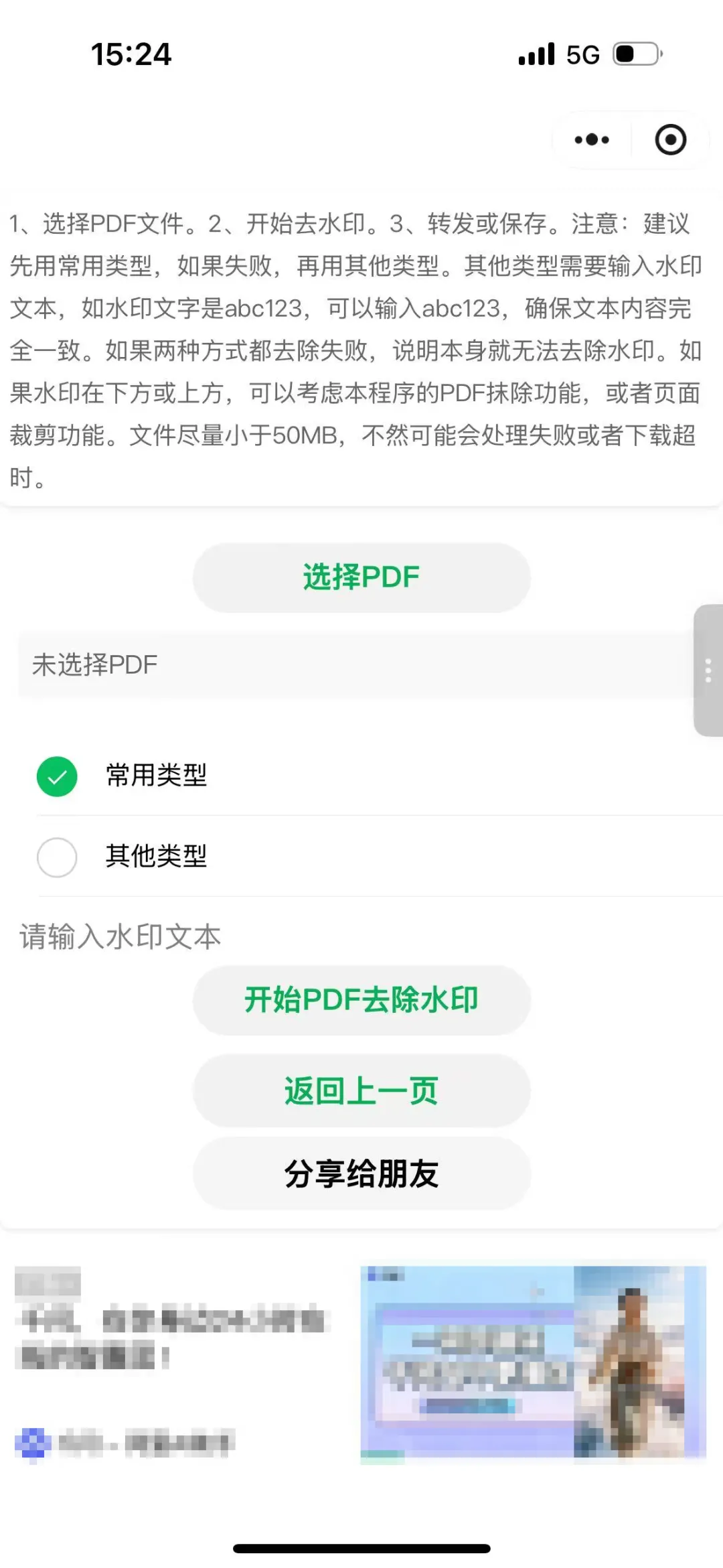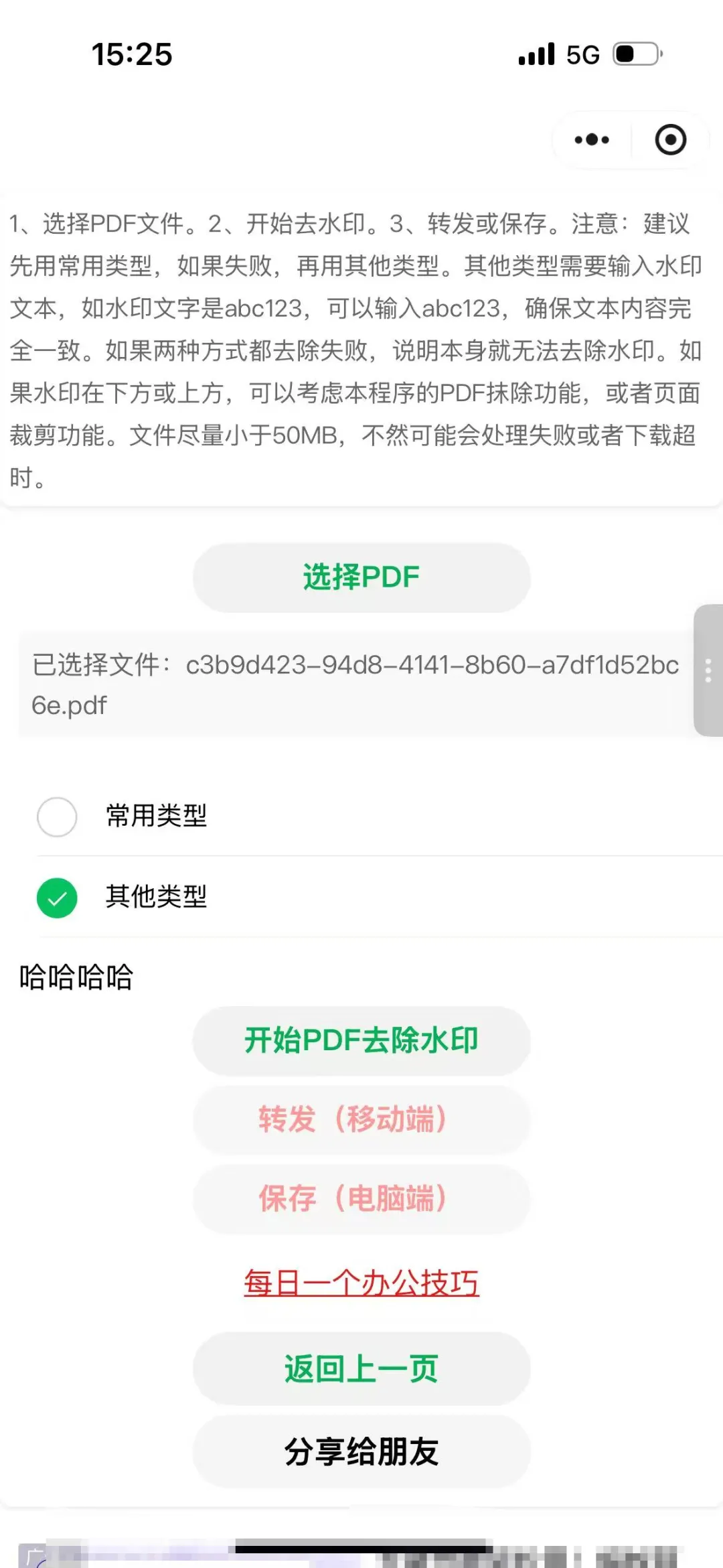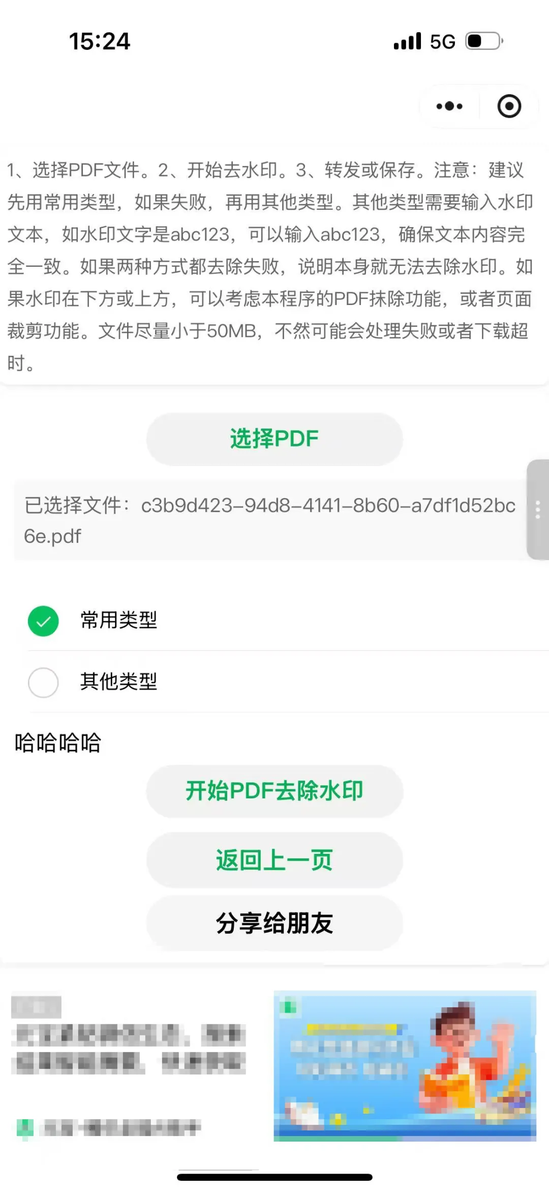 大家好,我是PDF小徐,我们在手机上有时候需要对一份PDF文件去除水印。让我们生成一个新的PDF文件。其实,这个操作在微信上就能实现。今天小徐就来介绍下哦。文末能看到哪些常用水印能去除。