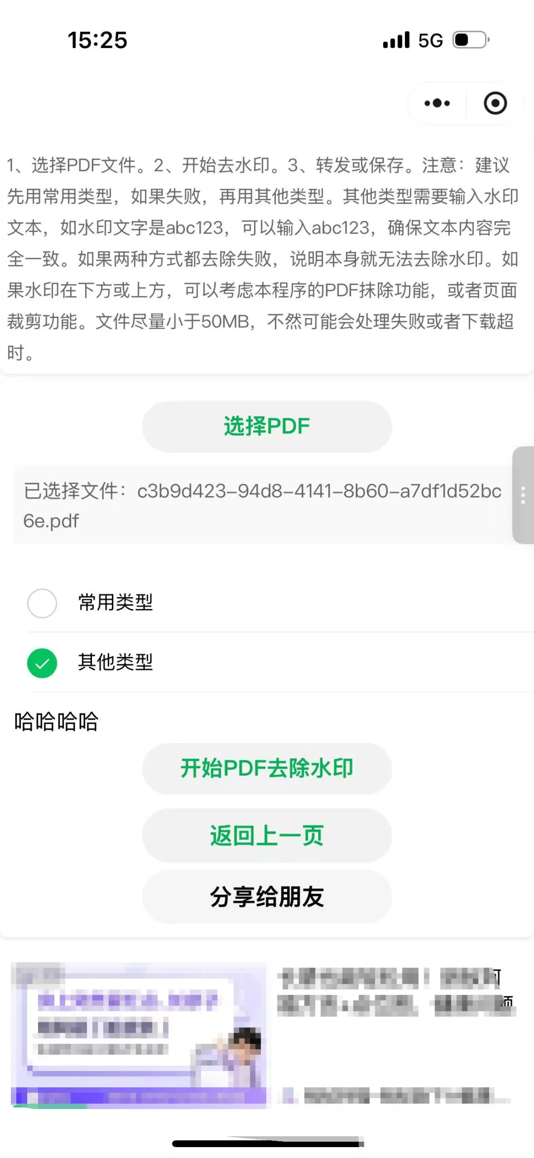 好了,今天就讲到这儿啦。以上就是如何在手机微信上去除PDF的水印的操作,如有问题,欢迎留言讨论,感谢你的阅读,请给我点个赞吧!