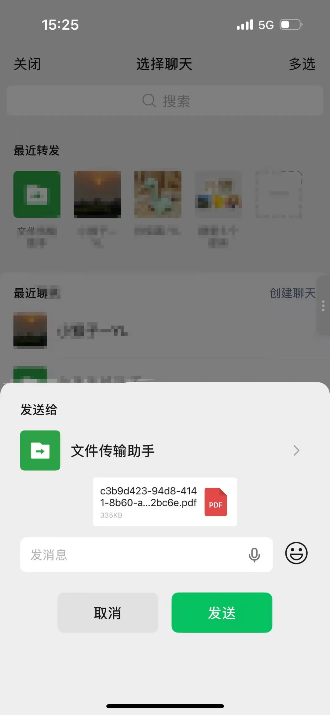 然后,就可以把这个旋转后的新文档转发给某个聊天了,比如发给文件传输助手。