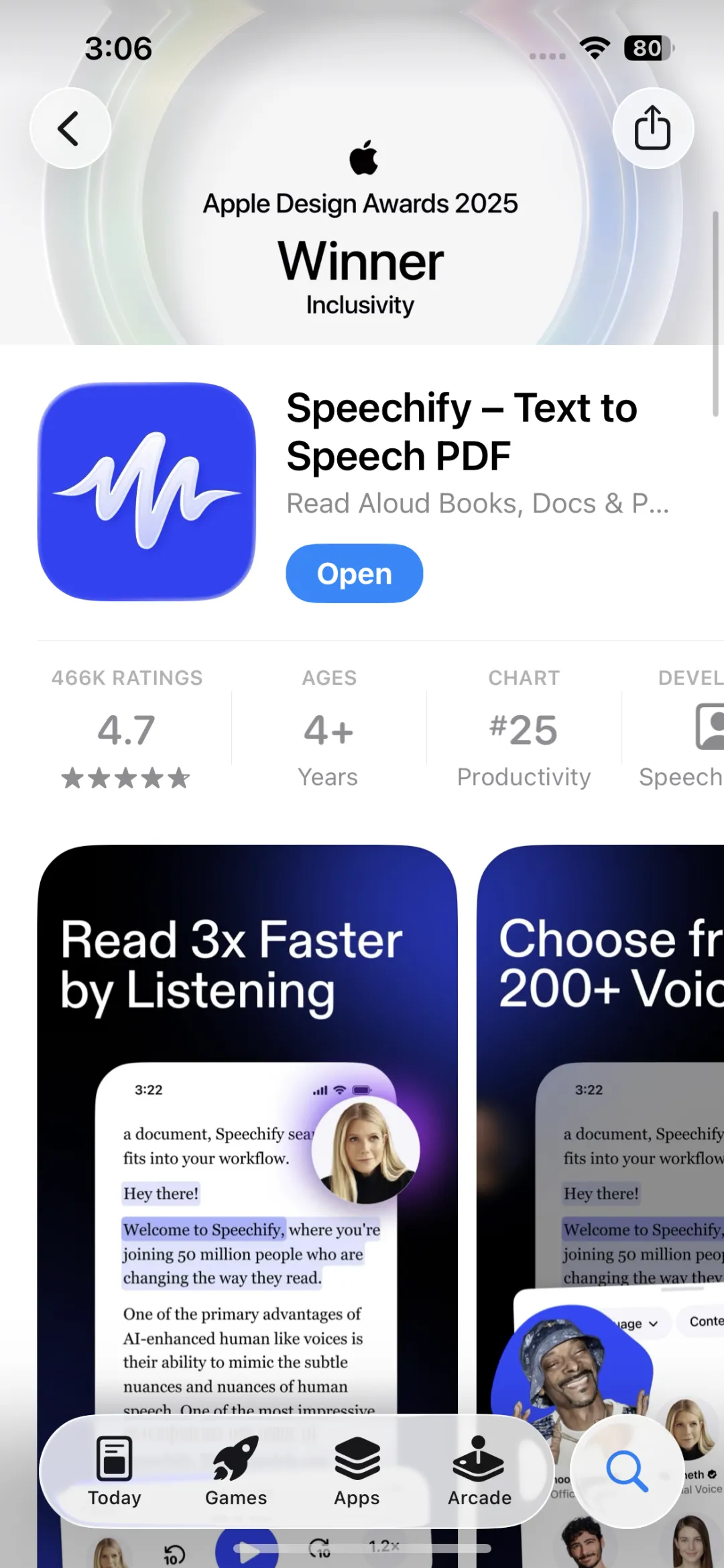 Speechify 同样支持手机 App(安卓/iOS 都有!)和网页版,甚至还有 Chrome 浏览器插件。