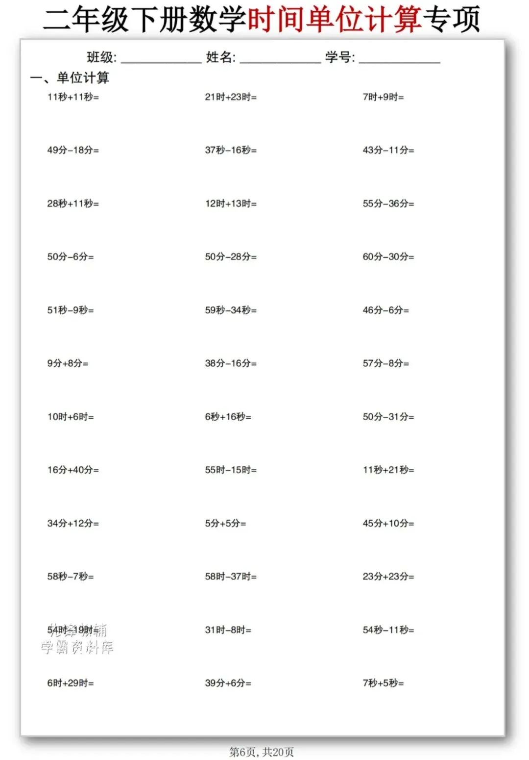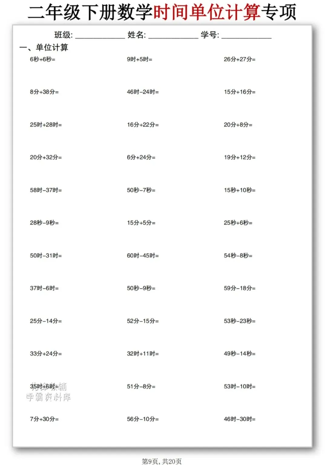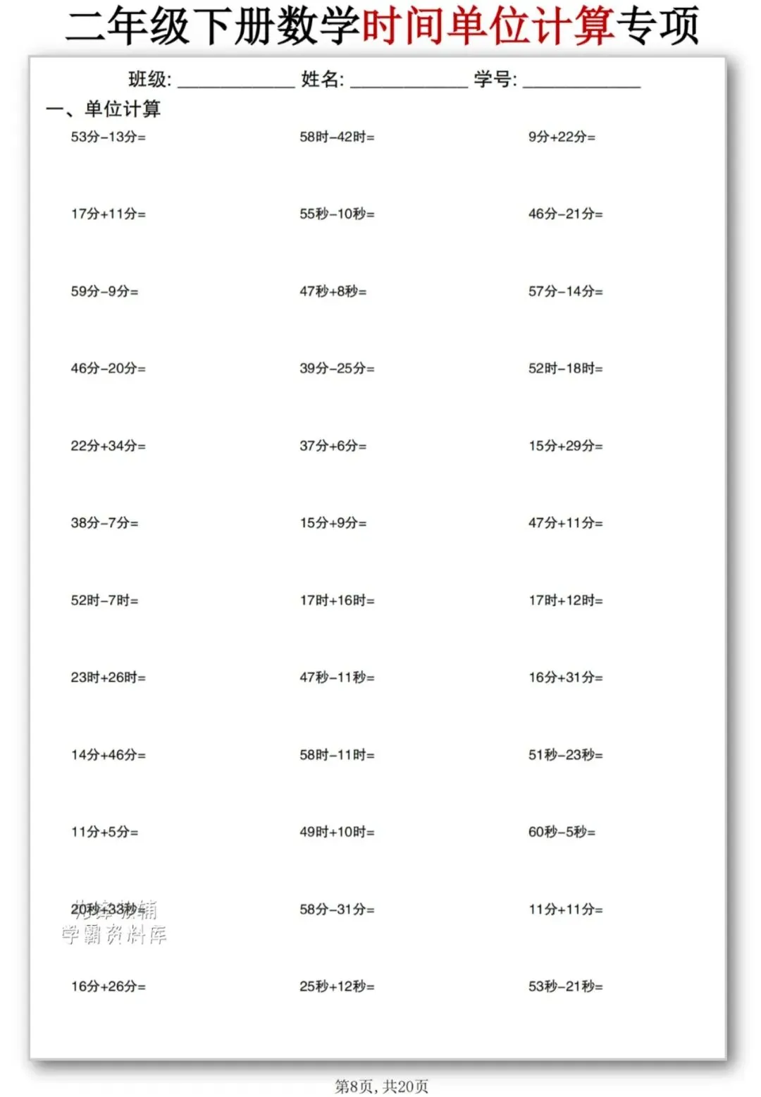 今天为大家分享二年级数学【时间单位计算】,二年级时间单位计算不用愁⏰秒、分、时的加减法,练多了自然就熟了。每天10分钟,单位换算不丢分💯
