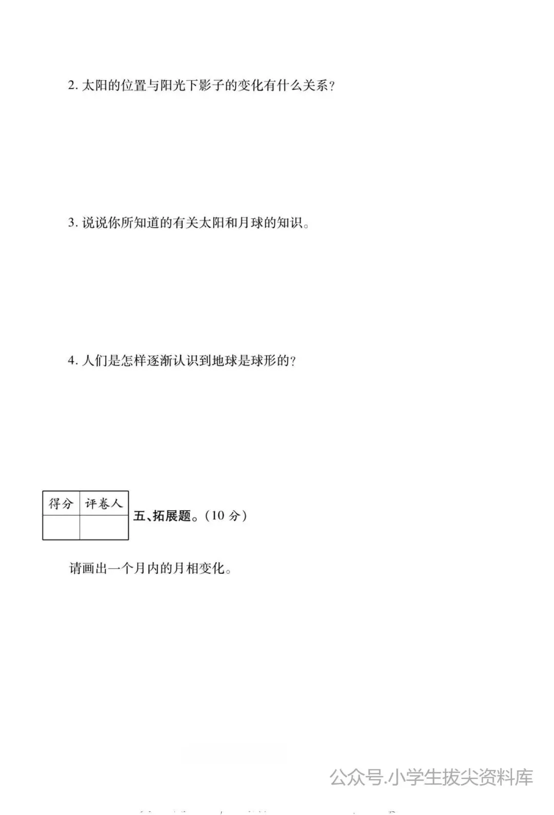 这份试卷真的太有意思了!孩子们不仅要做题,还要模拟制造“环形山”、观察影子变化、画出月相变化……边玩边学,科学课原来可以这么好玩!