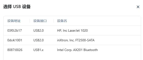 第三步:把打印机插到飞牛的USB接口上,最好以后都不要换了。编辑虚拟机,在硬件直通中添加USB硬件设备。