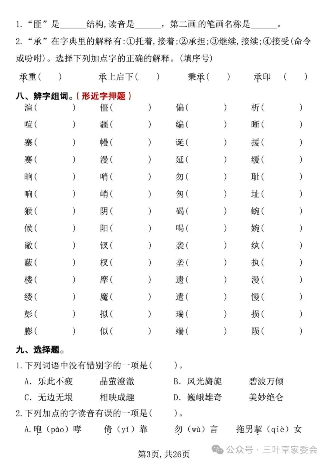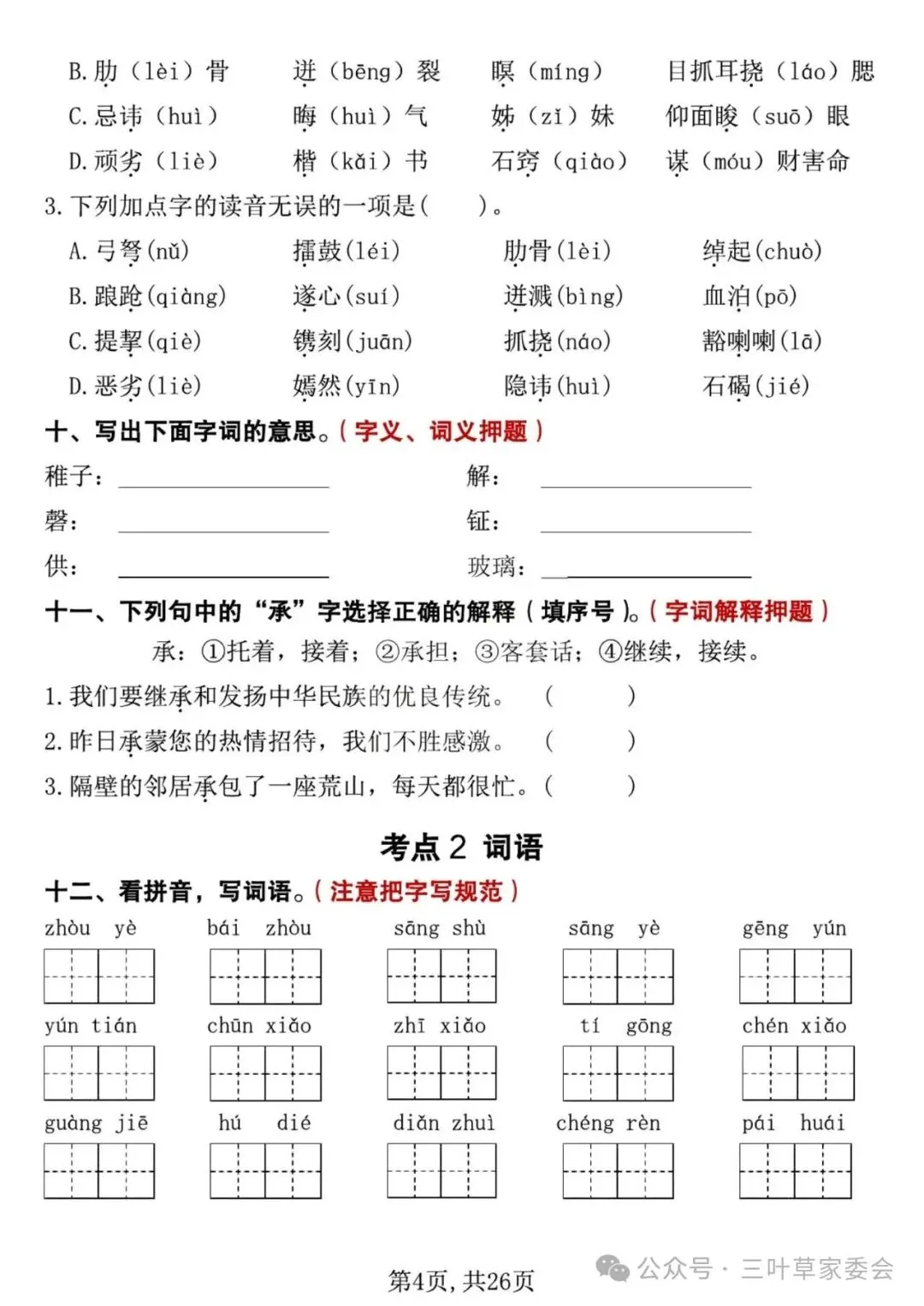 26春【期中复习专项押题版】五下语文,电子版可下载打印