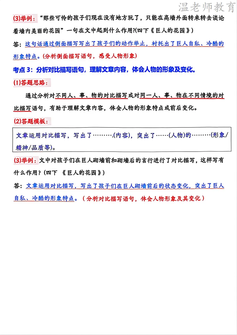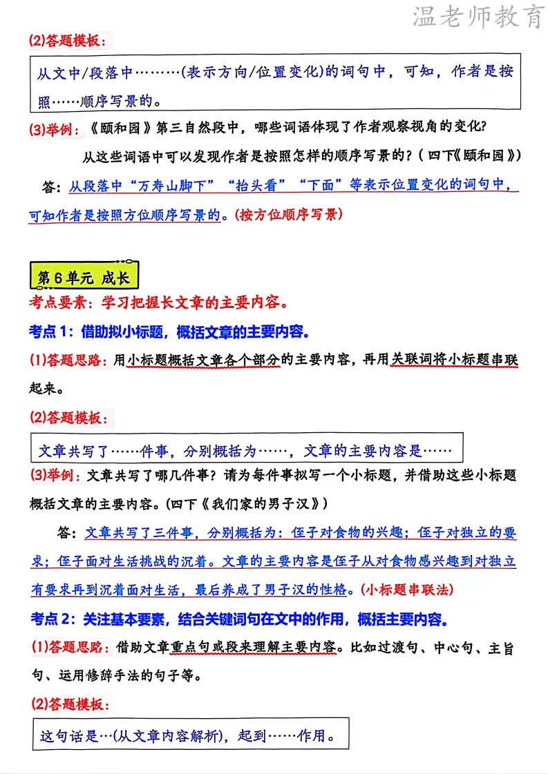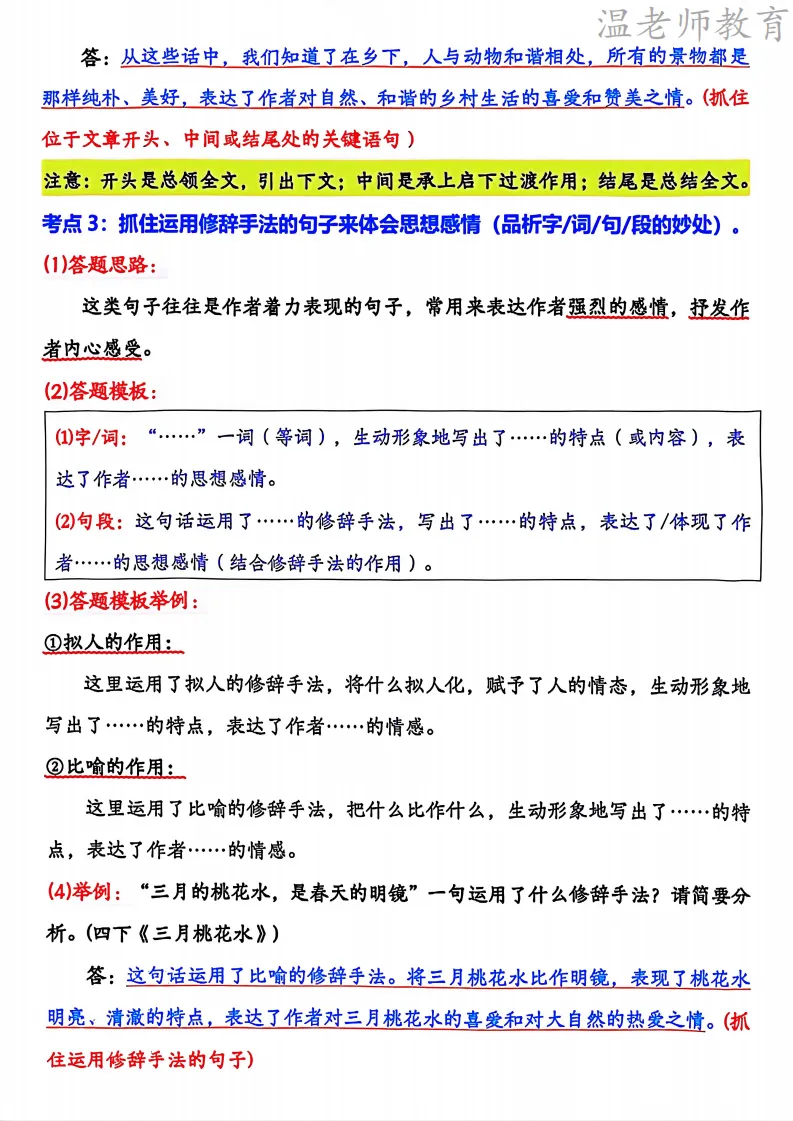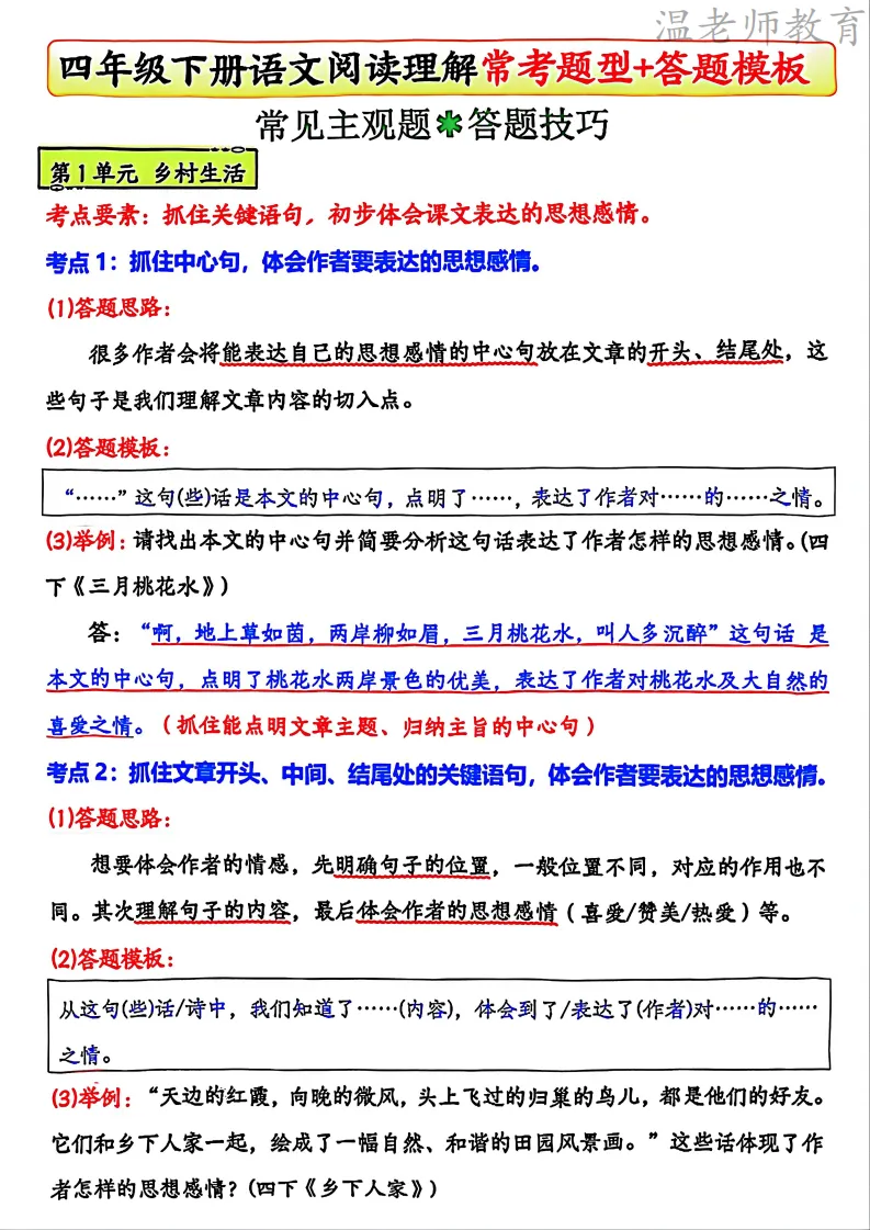 🌸今天给家长分享的是:26四年级下册语文《阅读理解常考题型》|电子版可打印