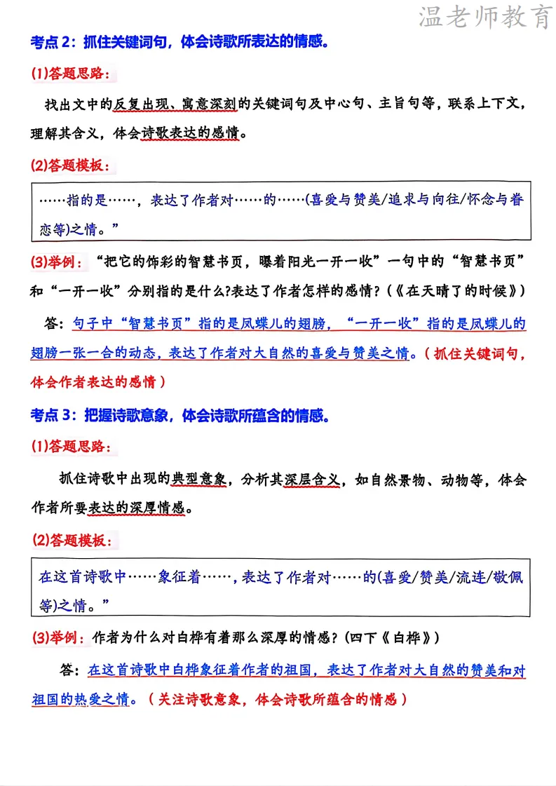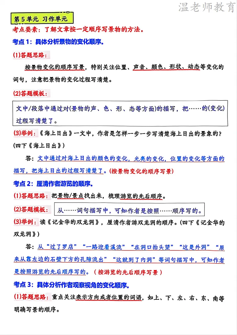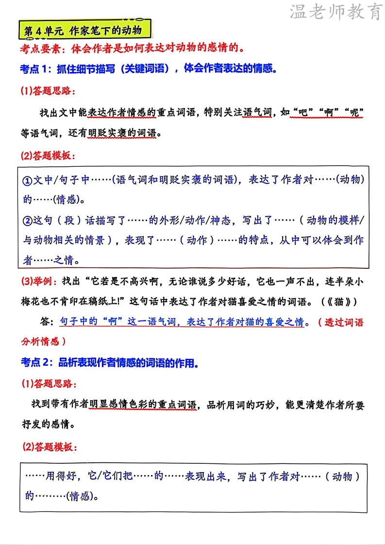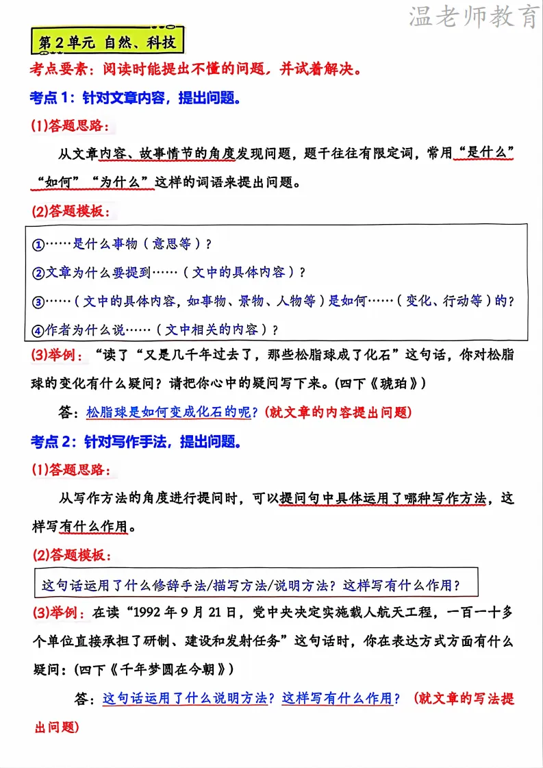 🌸今天给家长分享的是:26四年级下册语文《阅读理解常考题型》|电子版可打印