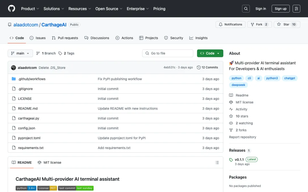 One of the standout features of CarthageAI is its multi-provider support, allowing users to switch between different AI models effortlessly. It also offers context-aware responses by referencing files directly in your commands, such as using @file.txt. This means you can analyze code or configuration files in real time, making it easier to debug and improve your projects. Additionally, the built-in commands for system administration, like checking open ports and auditing sudo users, make it a versatile tool for developers who need to manage their environments efficiently.