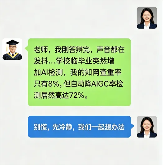 凌晨两点,我接到一位刚答辩完的硕士私信,他声音都在发抖,学校临毕业突然加的AI检测,他的知网查重率虽然只有8%,但自动降AIGC率检测居然高达72%…面临取消学位。这不是个例,现在的论文查重平台算法,已从“关键词比对”进化到“语义逻辑链检测”,用老办法改词换句行不通了。