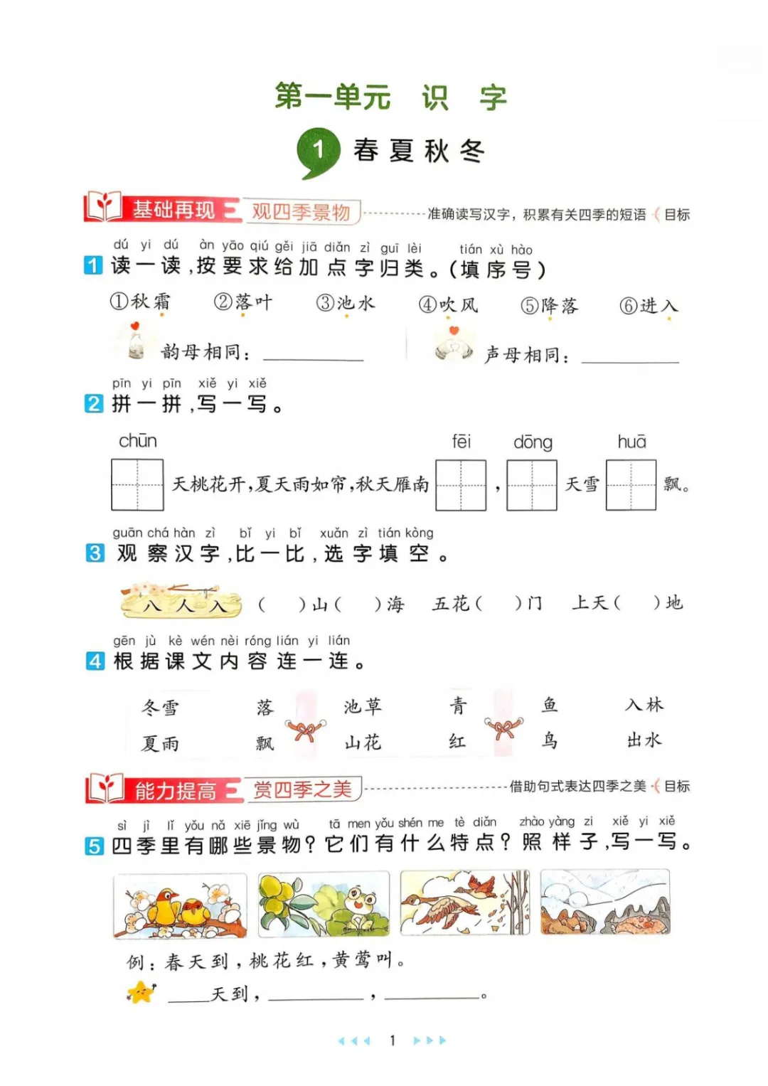 【免费下载】一年级(下)语文 同步课课练,PDF电子版,可打印