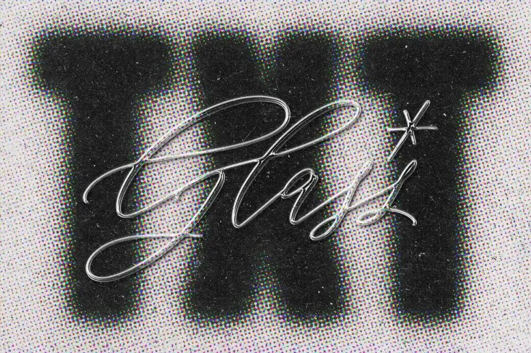 【免费下载】复古半调波点+透明玻璃文本logo叠加特效PSD样机Glass & Pattern Text Effect