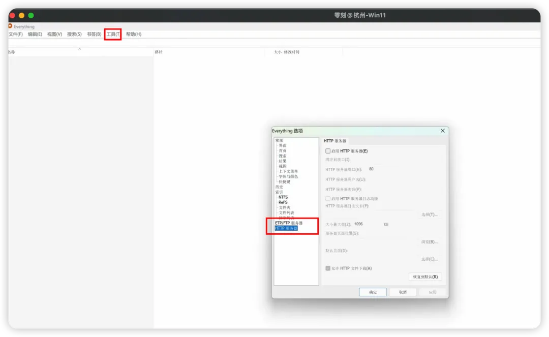 点击「确定」,HTTP 服务立即生效(无需重启 Everything)