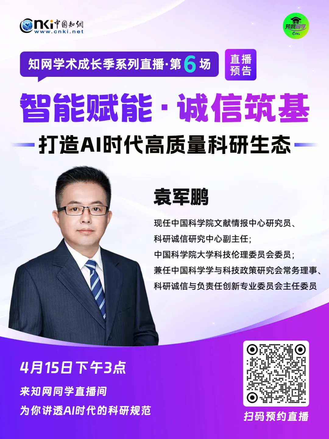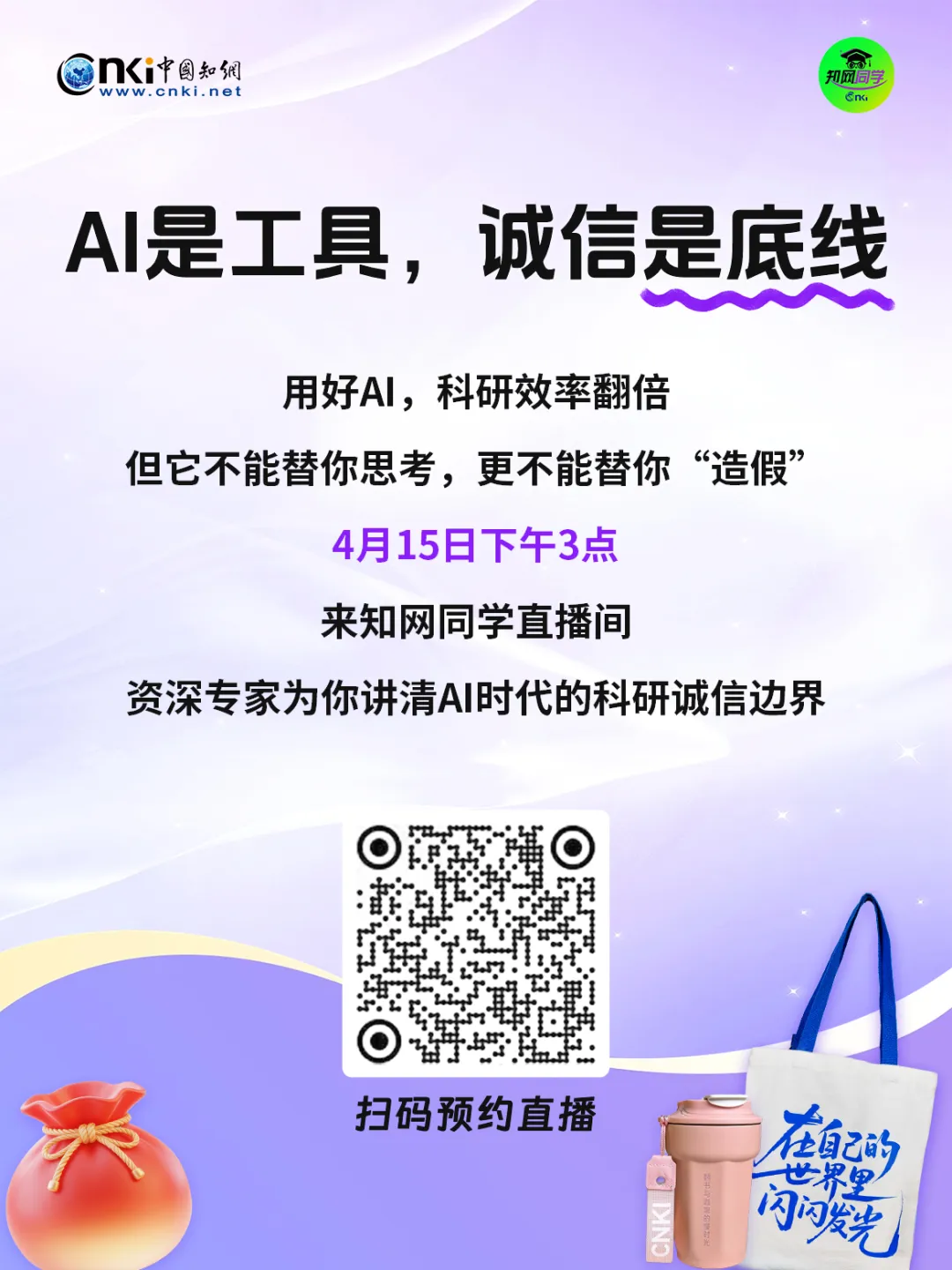 ⏰ 4月15日下午3点📺 来知网同学直播间为你详细解读AI工具规范使用的边界与标准一起恪守科研诚信,维护学术生态🤝 快来预约吧!