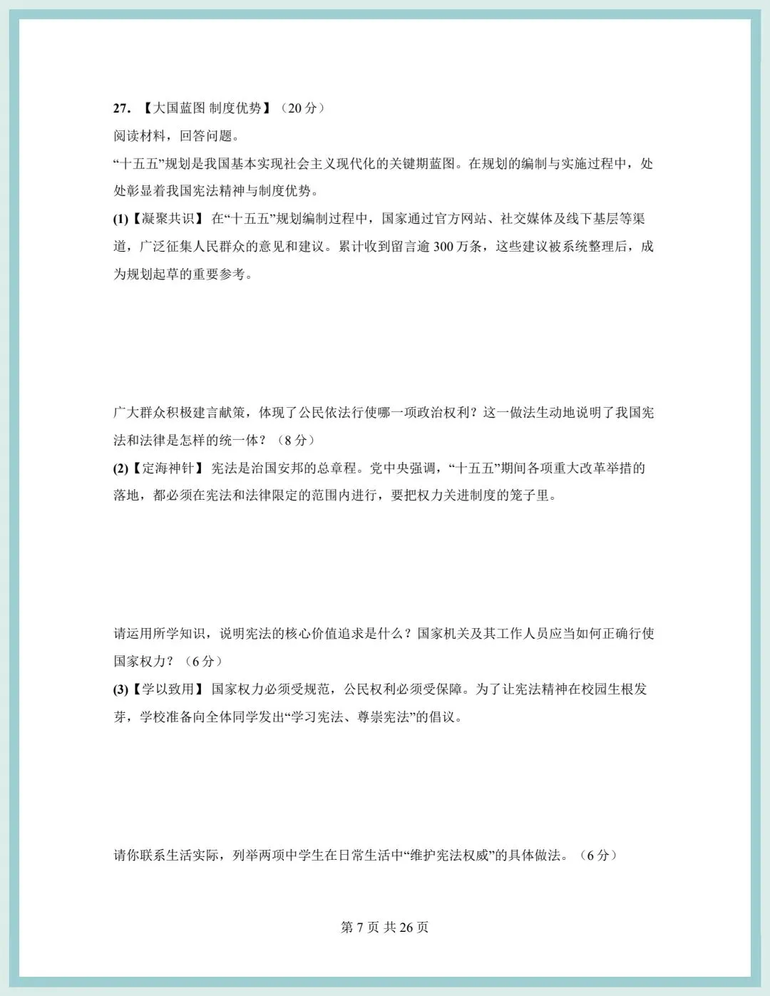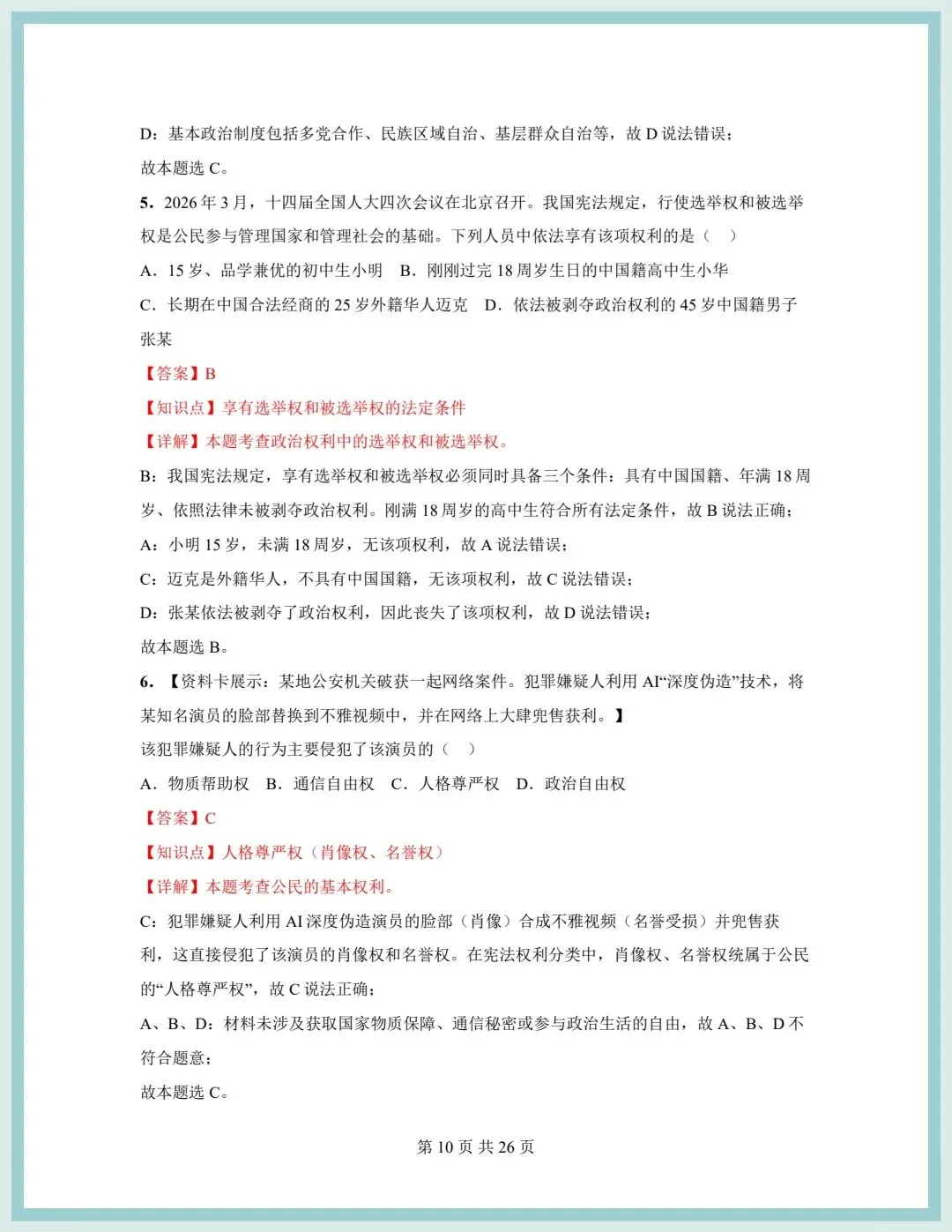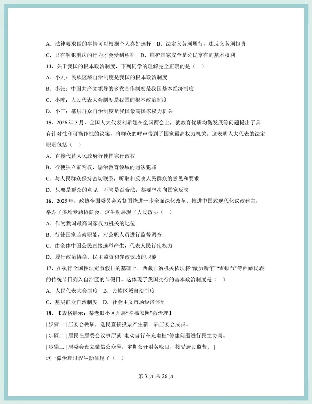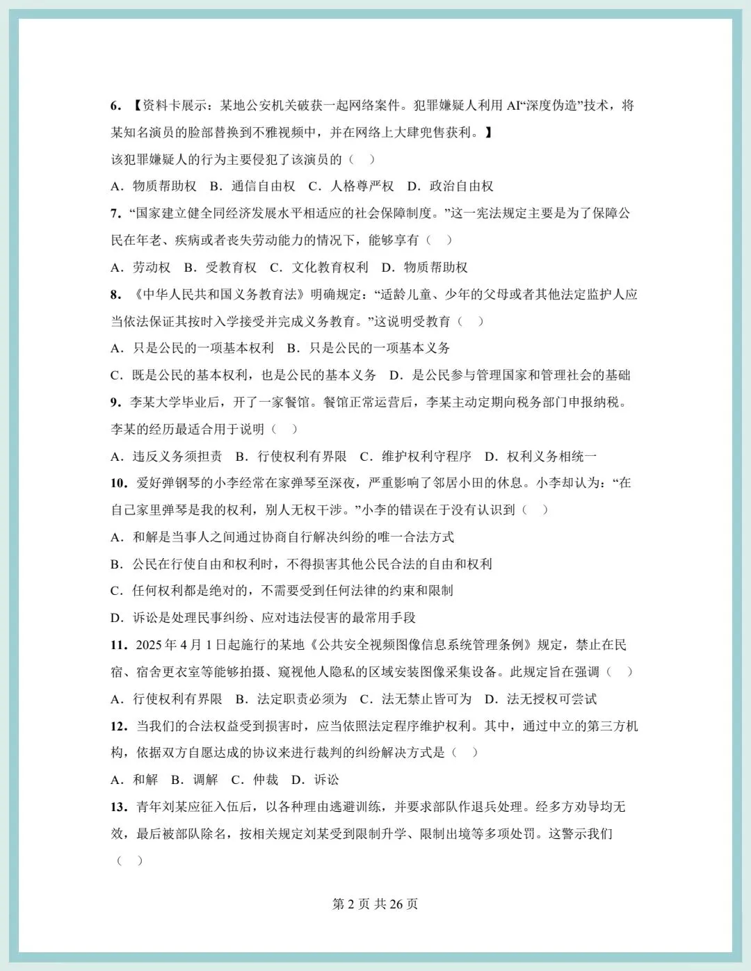 2026春统编版八年级下册道德与法治期中模拟质量检测卷(含答案),可打印!