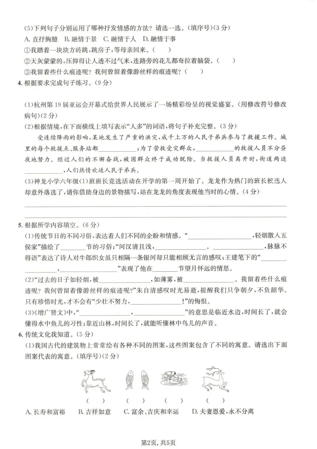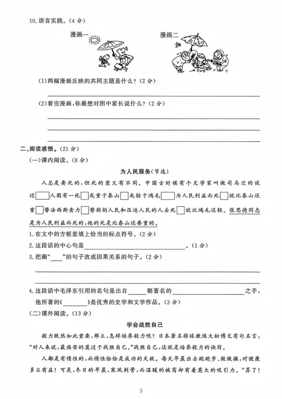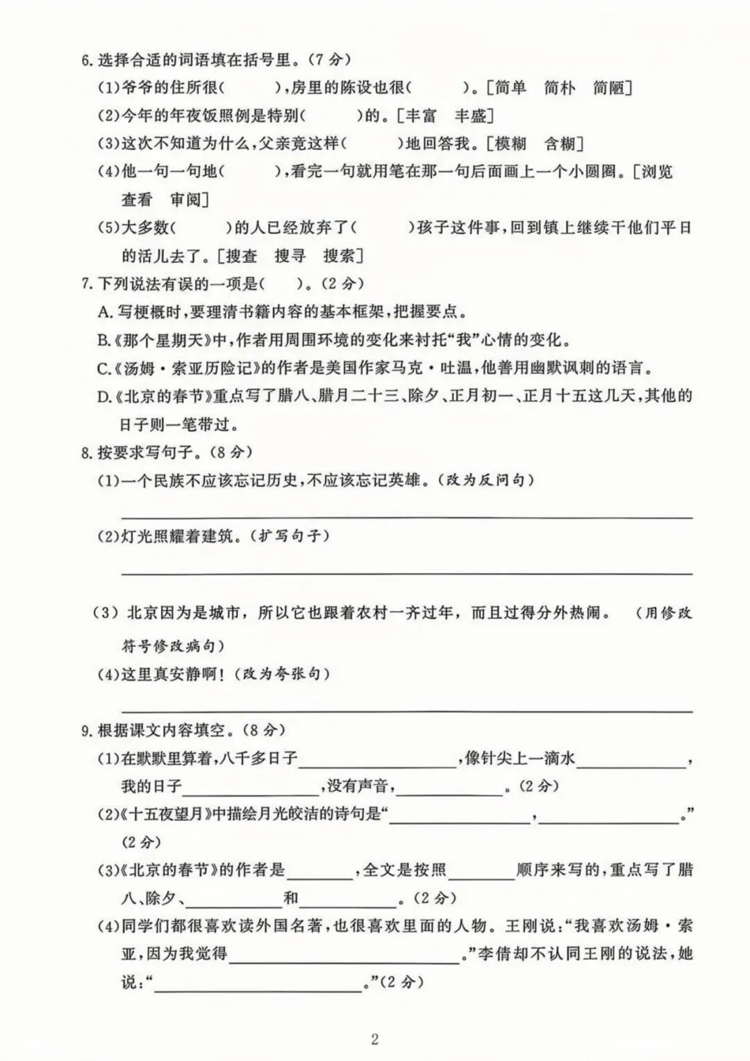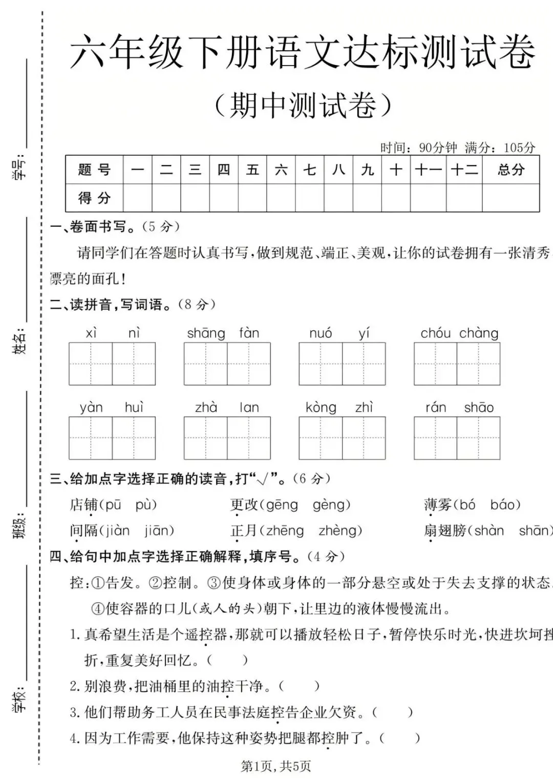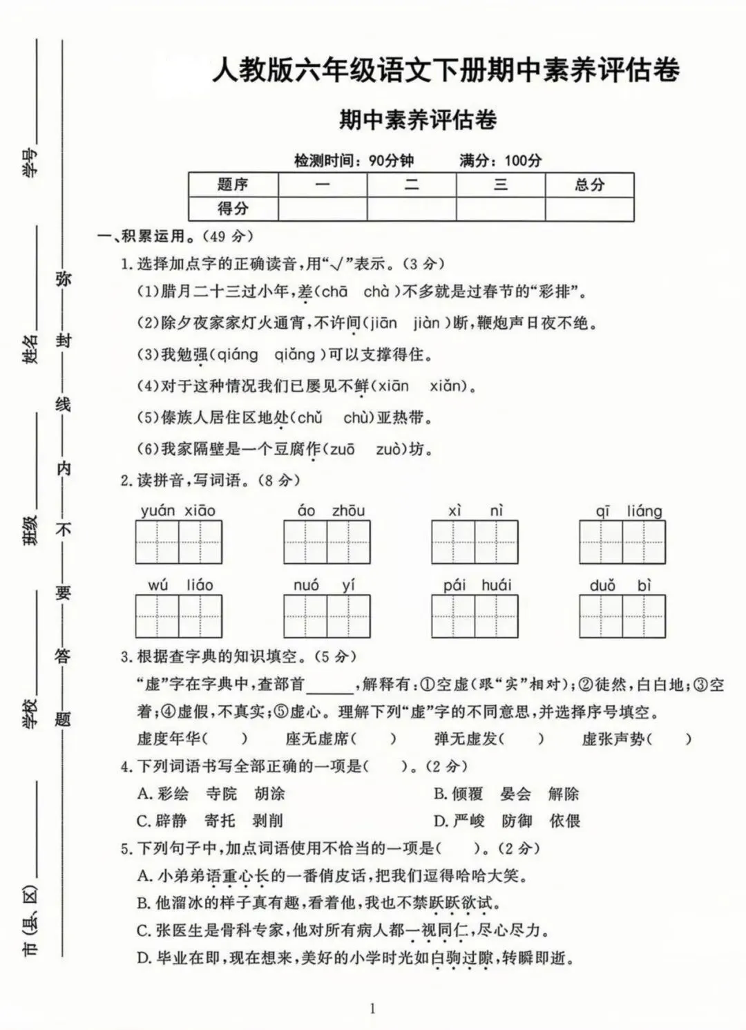 26春六年级部编版语文《期中达标测试卷、情景测试卷、质量检测卷》,(5套有答案)可打印