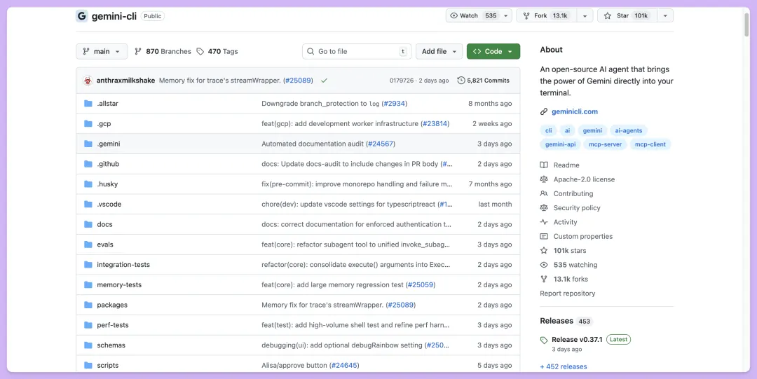 官方仓库:https://github.com/google-gemini/gemini-cli