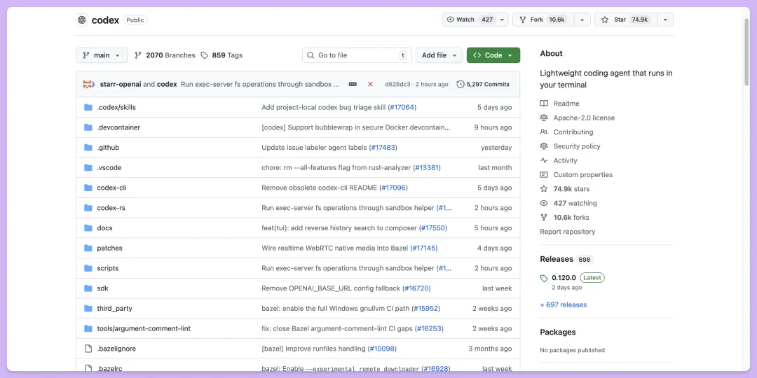 Codex CLI 是 OpenAI 官方推出的终端编程助手,热度相当高。