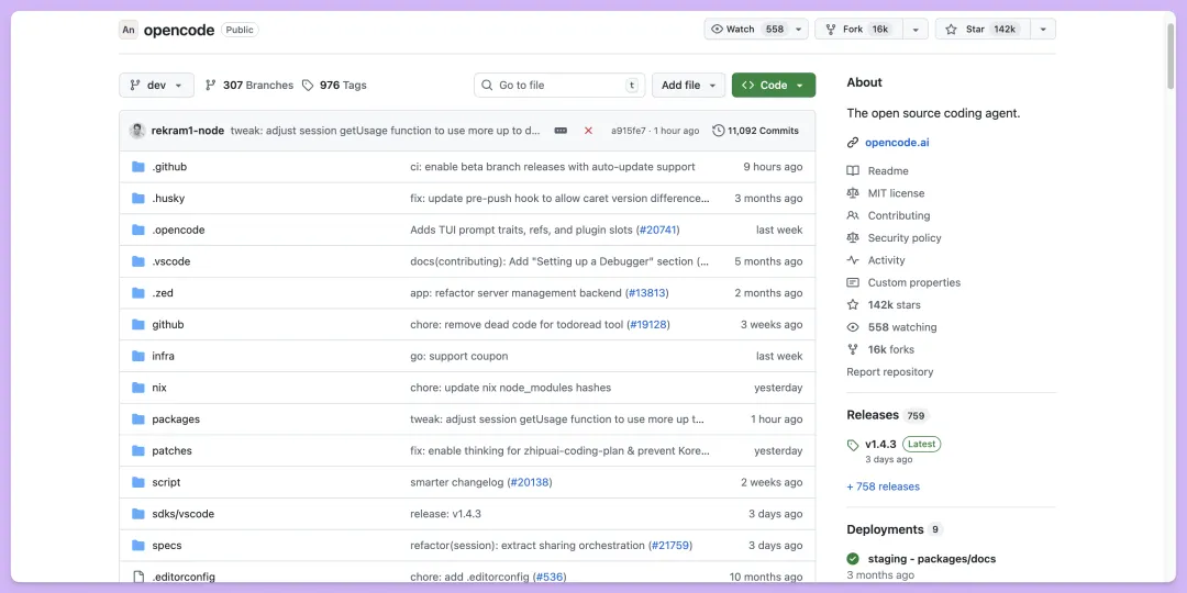 OpenCode 是目前 Stars 增速最猛的 CLI AI 编程工具之一,已经超过 14 万颗星。
