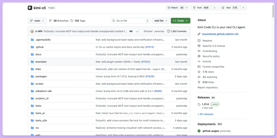 官方仓库:https://github.com/MoonshotAI/kimi-cli