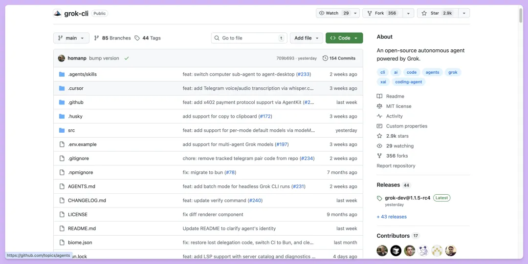 官方仓库:https://github.com/superagent-ai/grok-cli