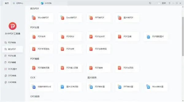永中PDF工具集是永中软件推出的免费PDF转换工具,支持PDF与Word、Excel、PPT、图片等格式互转,运行流畅稳定,很适合移动办公使用。