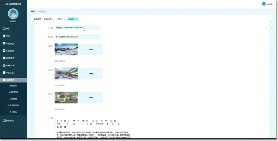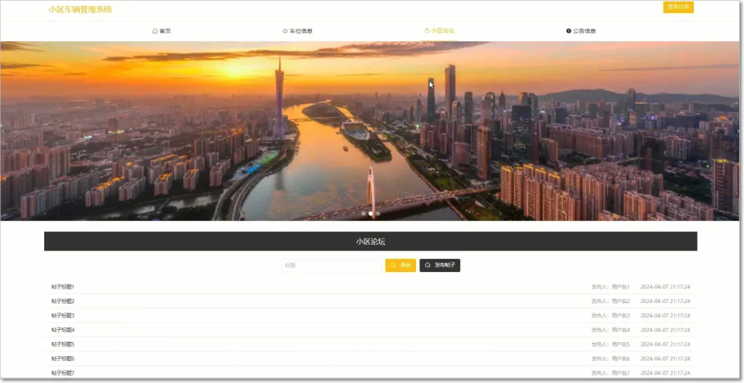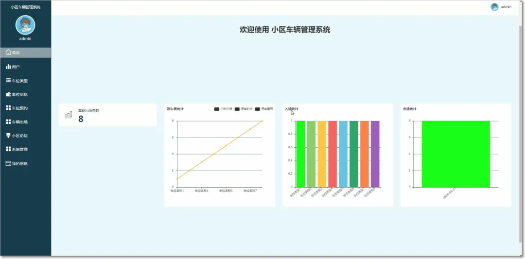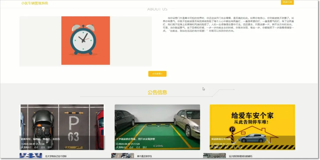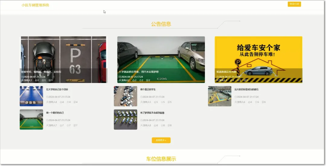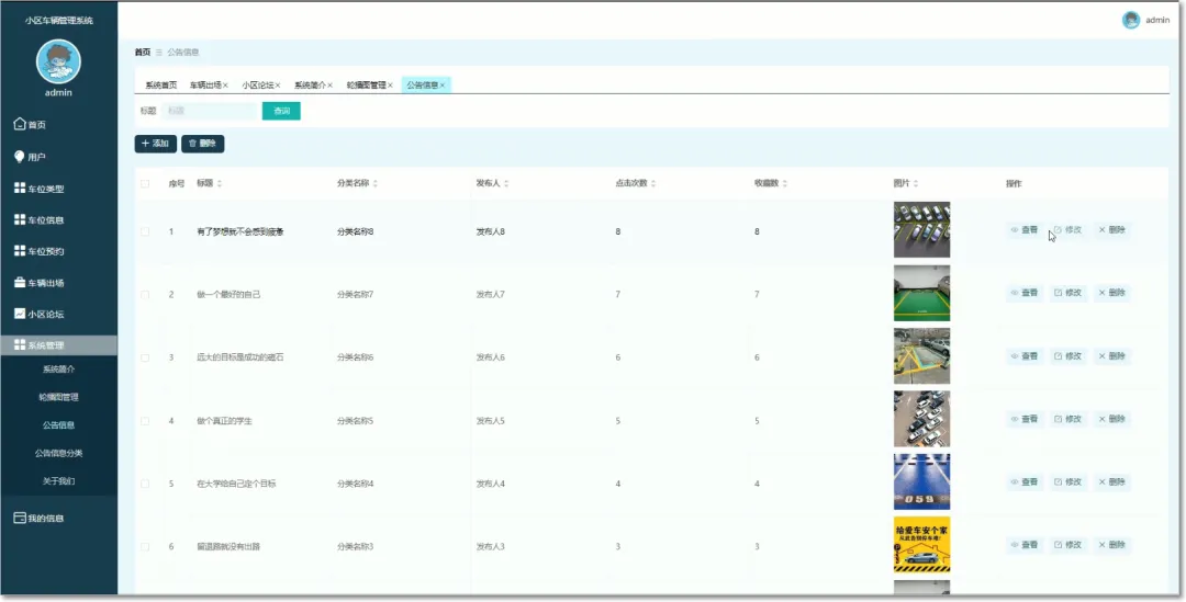 基于springboot与vue小区车辆管理系统包括用户权限管理、车辆信息管控、出入权限审核等模块的划分。