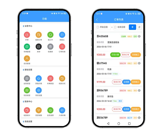 极速开单:对着车牌“咔嚓”一拍,或手动录入,快速创建订单。洗车、打蜡、维修、保养…项目随心添加,价格自动计算,效率提升50%以上!