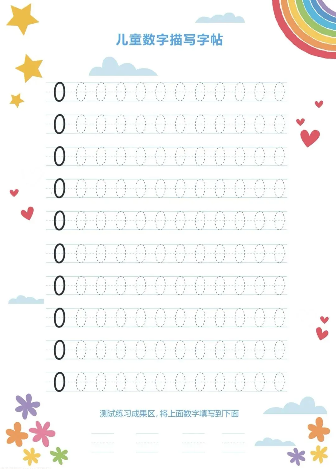 今天跟大家分享的是幼儿数字描红字帖,主要针对初次练习数字书写的小朋友,这里有0-9共10张数字描红字帖,经过练习初步掌握数字的书写。