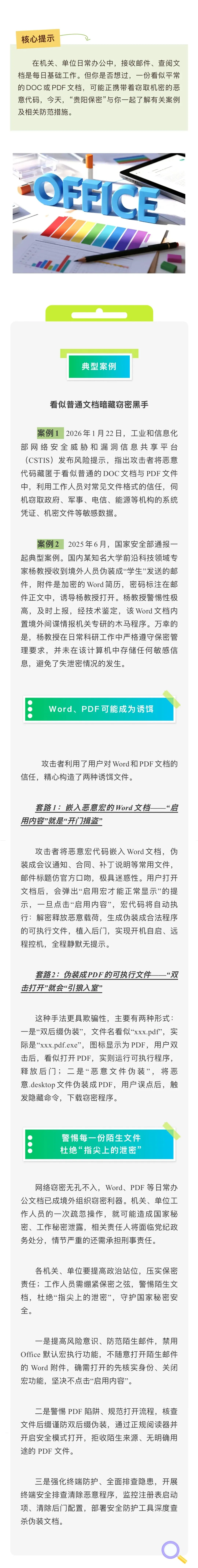 警惕办公文档窃密陷阱 严堵指尖线上泄密漏洞