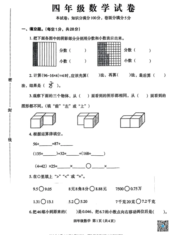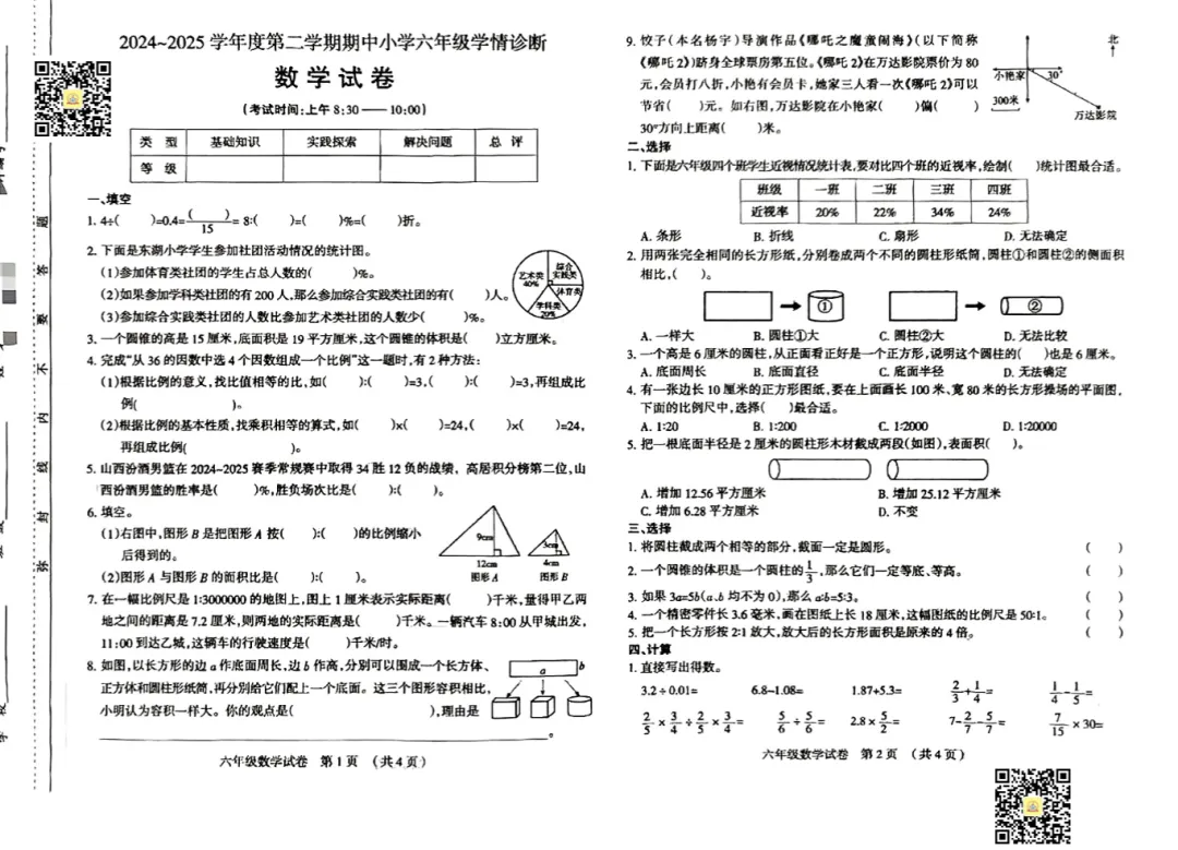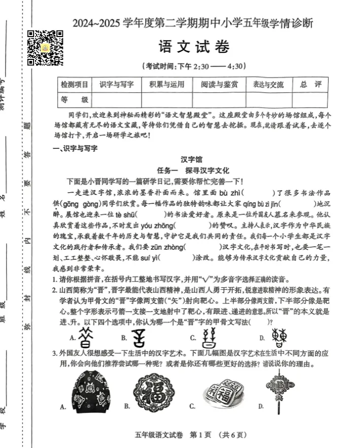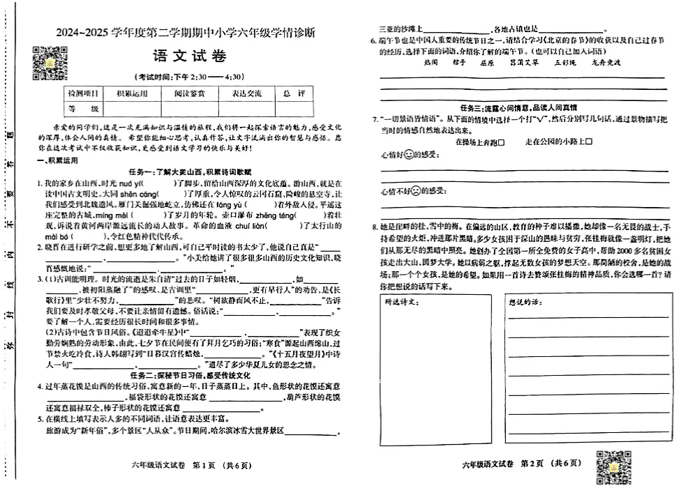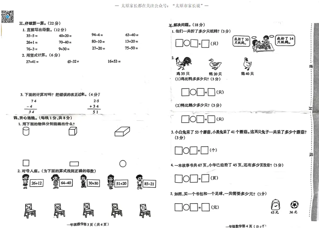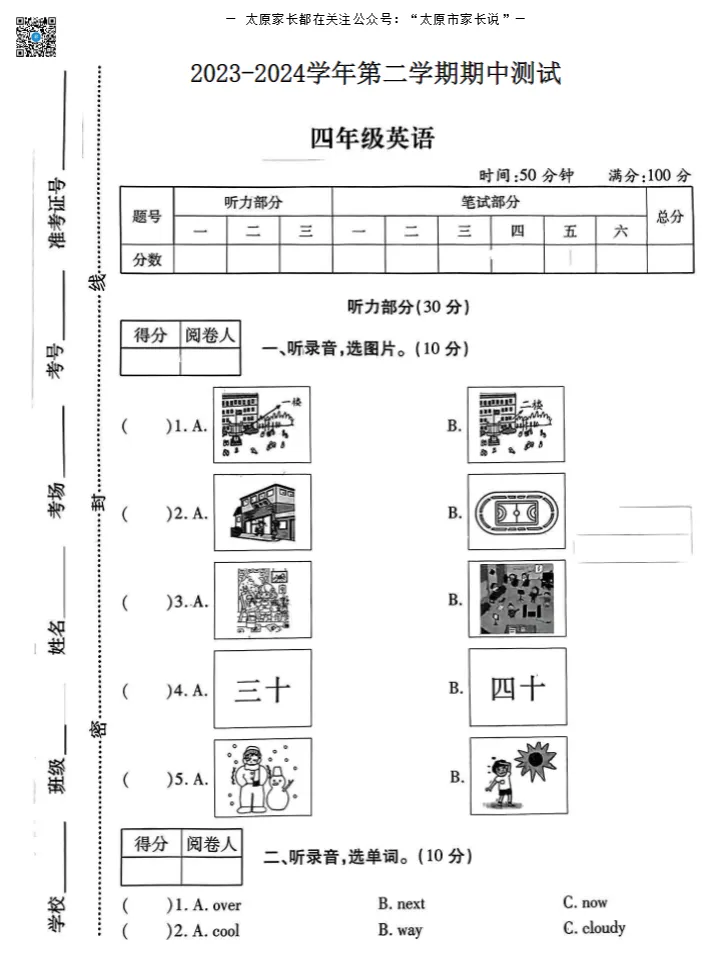 太原市小学往年下学期期中试题电子版免费领取!