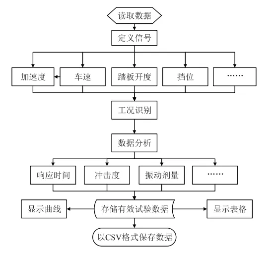 Fig.1 App设计原理图(系统数据读取、信号定义、工况识别、分析计算、结果输出全流程)