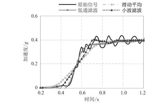 Fig.3 加速度信号降噪对比图(原始信号与三种滤波方法处理效果对比)