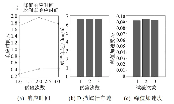系统可自动计算响应时间、冲击度、振动剂量、加速度增益等核心指标。在PHEV实车测试中,蠕行工况稳定输出车速、峰值加速度等指标;起步加速工况清晰呈现不同踏板开度下的响应与平顺性差异;匀速工况精准输出各车速对应油门开度;急加急减工况量化扭矩响应与冲击特性;滑行减速工况直观反映能量回收减速度特征。