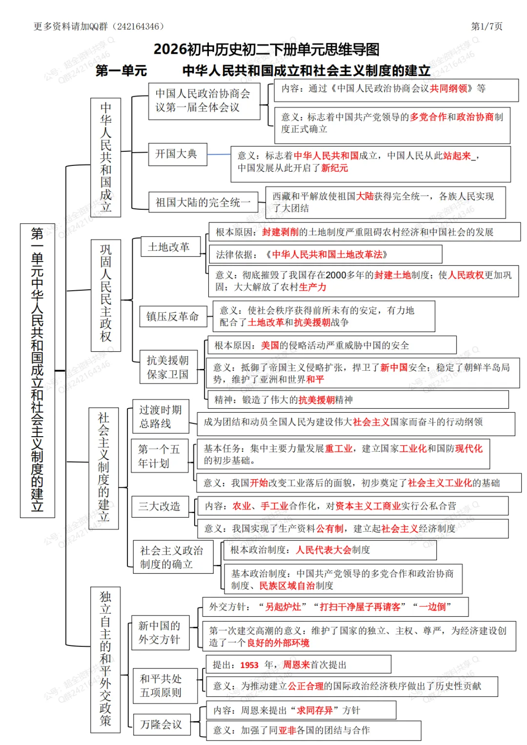 267.2026新人教版初二下册历史全册各单元知识点总结(pdf分享)