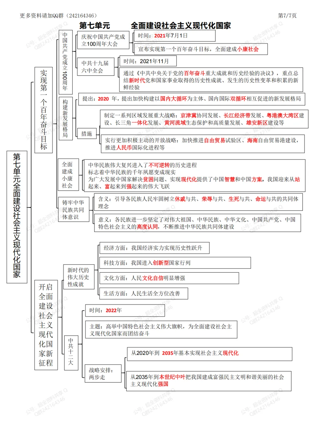 99.初中历史七年级下册复习主干与重点知识提纲(pdf分享)