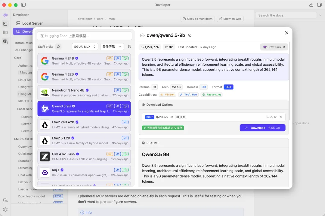 由于是在个人电脑上部署,不想花太多时间去折腾环境配置,希望有一个开箱即用,兼容性好的方案。因此我选择了LM Studio作为部署方式。LM Studio是一个跨平台图形界面软件,可以很方便地下载模型、修改配置。推理的后端也适配了多个平台,包括cpu,cuda,vulkan,metal等等。我实测n卡,a卡,apple silicon都能运行,效率都还不错。例如,在我的4080显卡上运行Q4_K_M量化的qwen3.5-9b,常见的翻译负载下,ttft大约是0.5s,generation throughtput大约是100token/s
