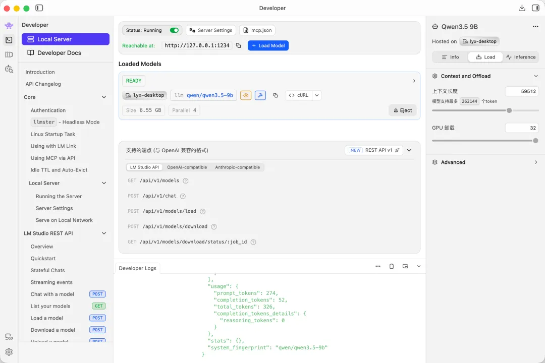 LM Studio可以把模型部署为openai-compatible的api,部署后,对先前提到的两个插件进行配置就可以使用本地模型进行部署了。