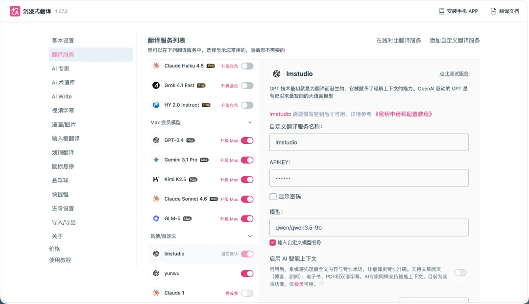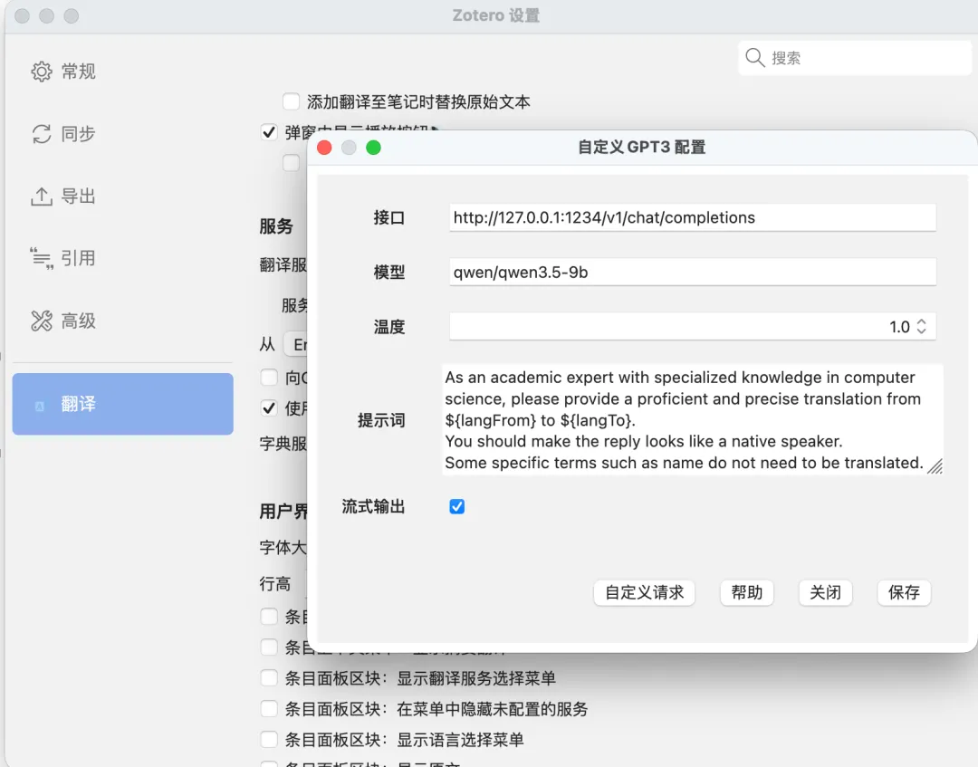 这两个插件本质都是通过调用大模型来翻译。可以自定义api,模型和prompt。因此,可以直接买网上的llm服务,也可以本地部署一个模型来翻译。我实测发现,现在的9B的Qwen3.5模型,在这种翻译任务上,跟顶尖闭源模型的差别不大。如果有需求的话还可以找到更小的专精翻译的模型。因此,我尝试配置本地模型来进行翻译。