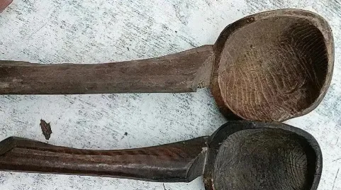 嗯这个我们老家叫木瓢,不是木勺,木勺是吃饭那种小的,这种大的叫木瓢,以前土灶台烧饭的时候用这个舀水,舀水舀水,一瓢一瓢的往锅里倒,那"哗啦"一声特别有感觉,我奶奶做饭的时候我就蹲在灶台边上看,看她用这个木瓢舀水,看她往灶膛里塞柴火,有时候烟大了熏得我直咳嗽,但就是喜欢待在那儿,可能是因为有奶奶在吧。说起这个,我突然想起来以前还有一种更大的木瓢,是用来舀猪食的,那个更夸张,得两只手才能端得动,装满了猪食沉得很,小时候我试着端过一次,差点把自己拽进猪圈里去,哈哈笑死我了。这木瓢啊用久了会开裂,裂缝里黑黑的,洗都洗不干净,但就是好用,比塑料的顺手,塑料的轻飘飘的没手感,木头的这种沉甸甸的感觉才是真材实料,才是真材实料,你说是吧。