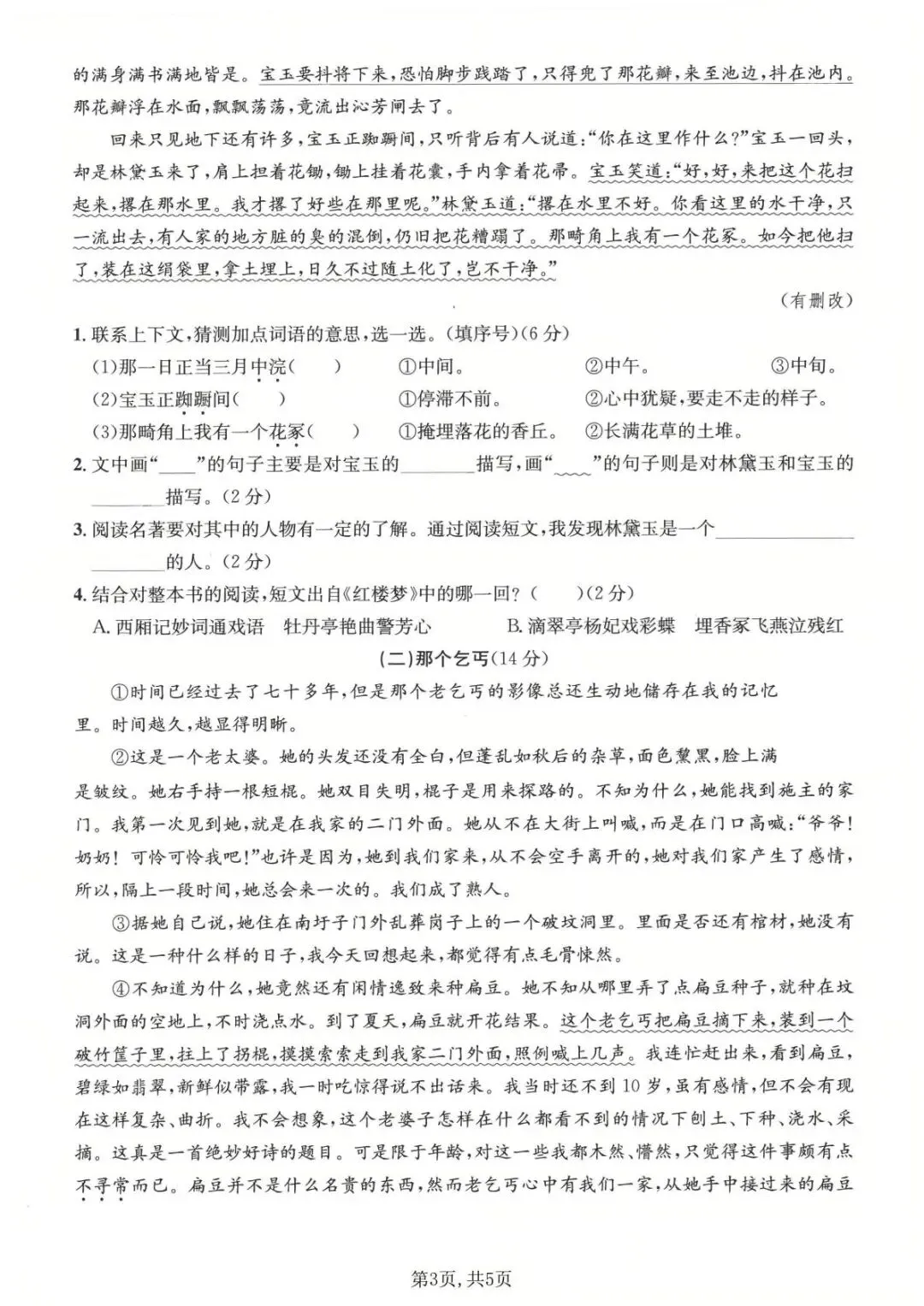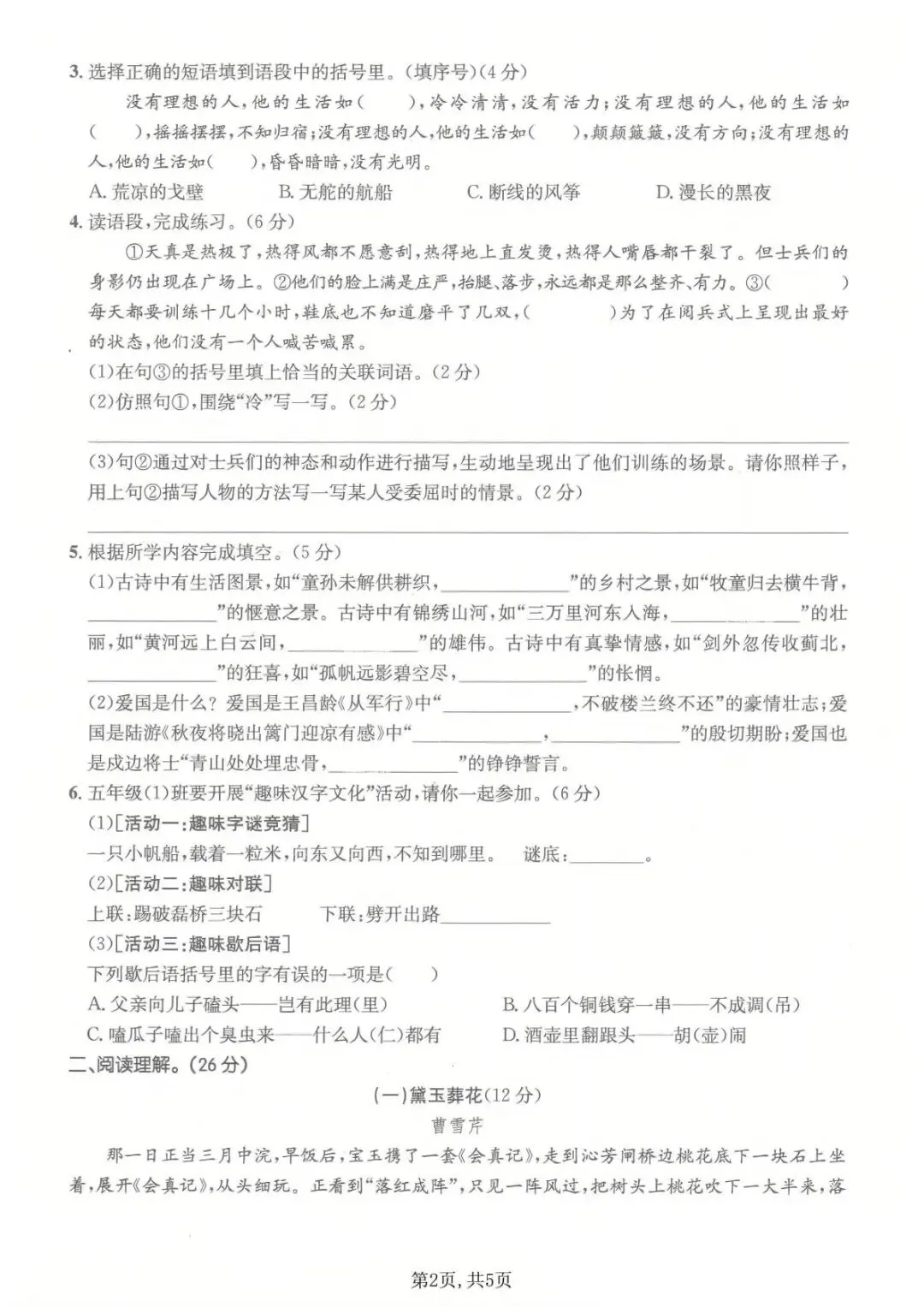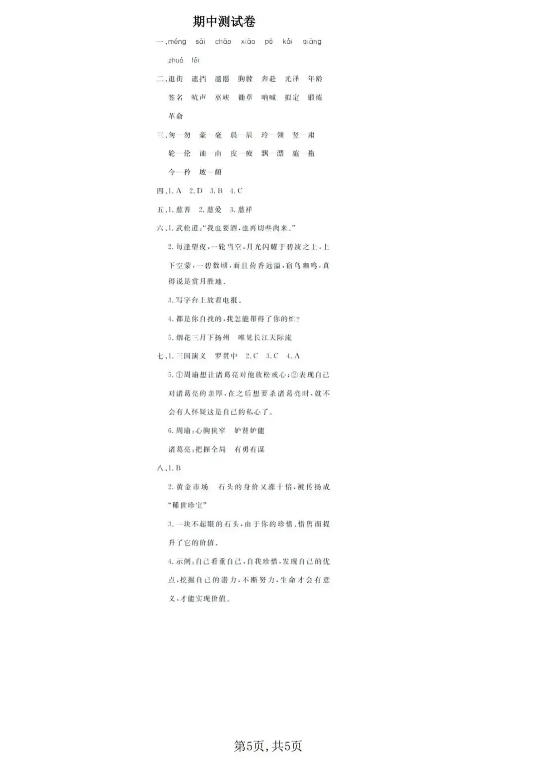 26春五年级部编版语文《期中摸底测试、拔尖测试卷、质量检测卷》,(6套有答案)可打印
