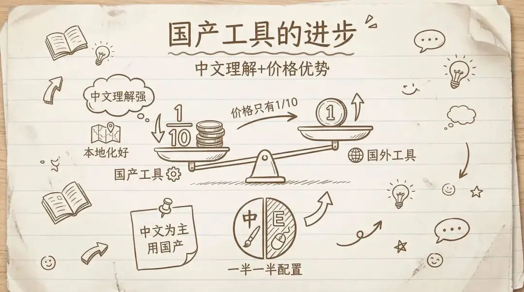 对于中文为主的工作场景,国产工具完全可以作为主力。我现在的工具箱里,国产和国外的比例大概是一半一半。
