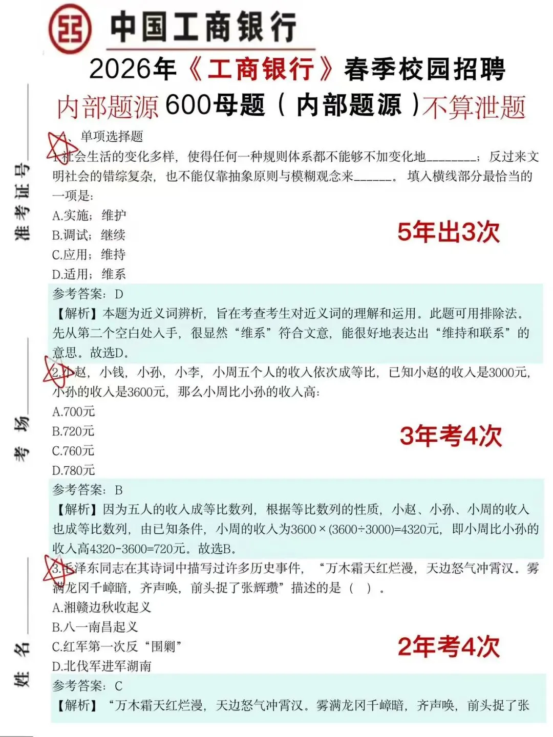 2026中国工商银行考前压题卷、中国工商银行真题、考前三色笔记、各类知识点、时政热点、考前冲刺、企业文化等等
