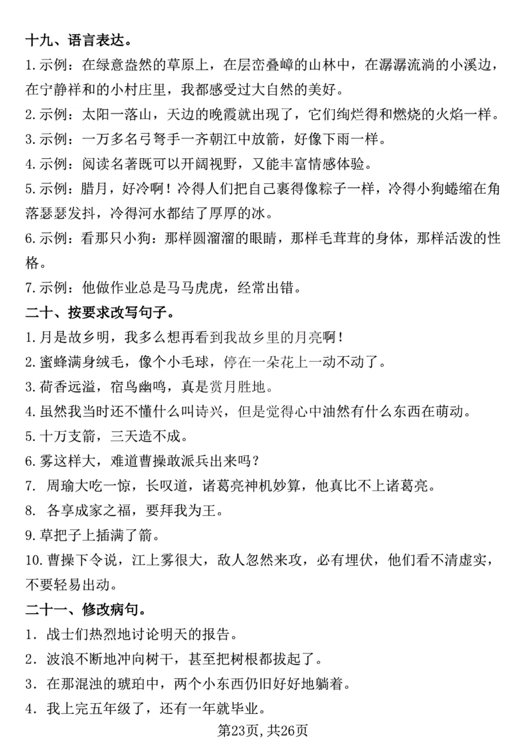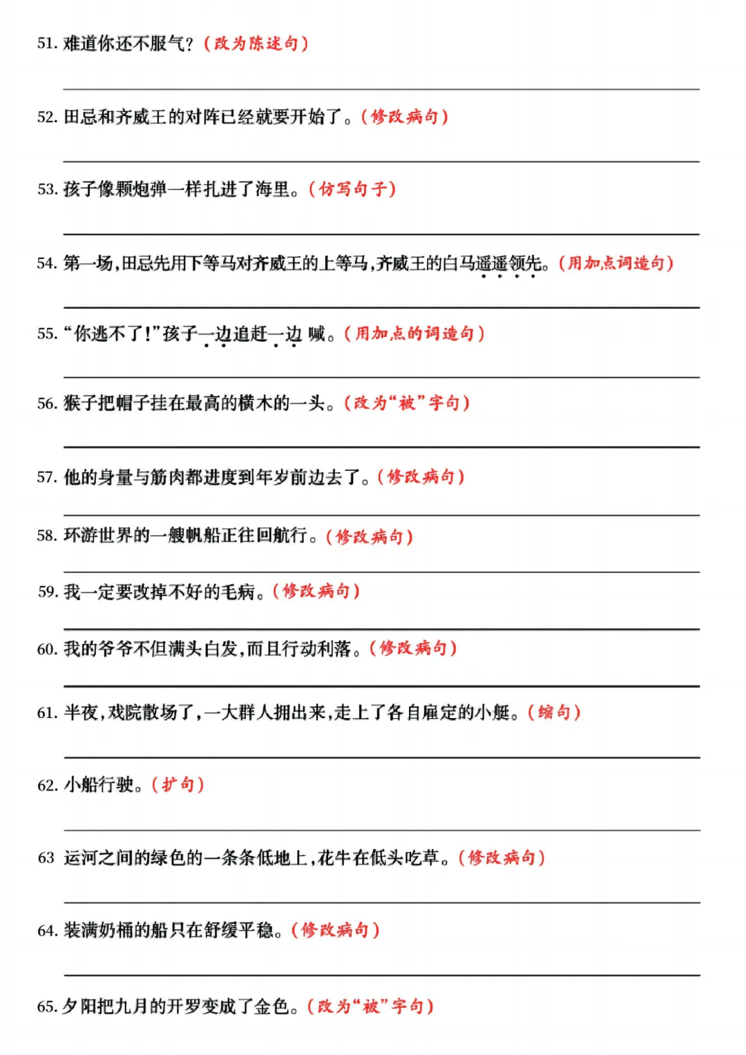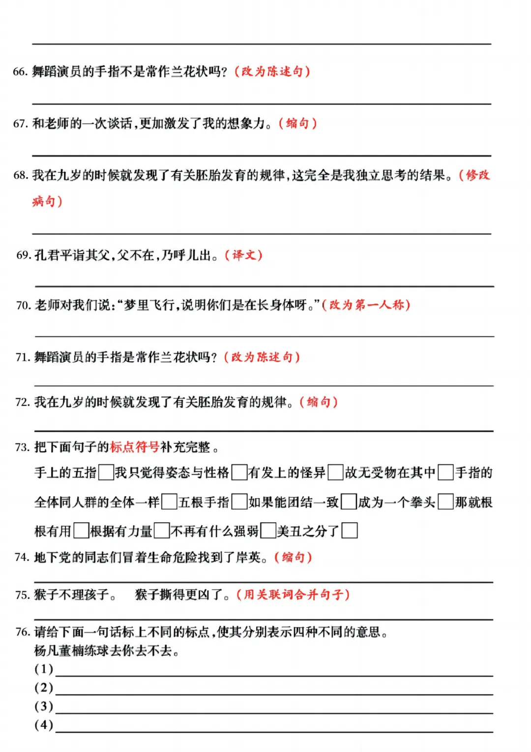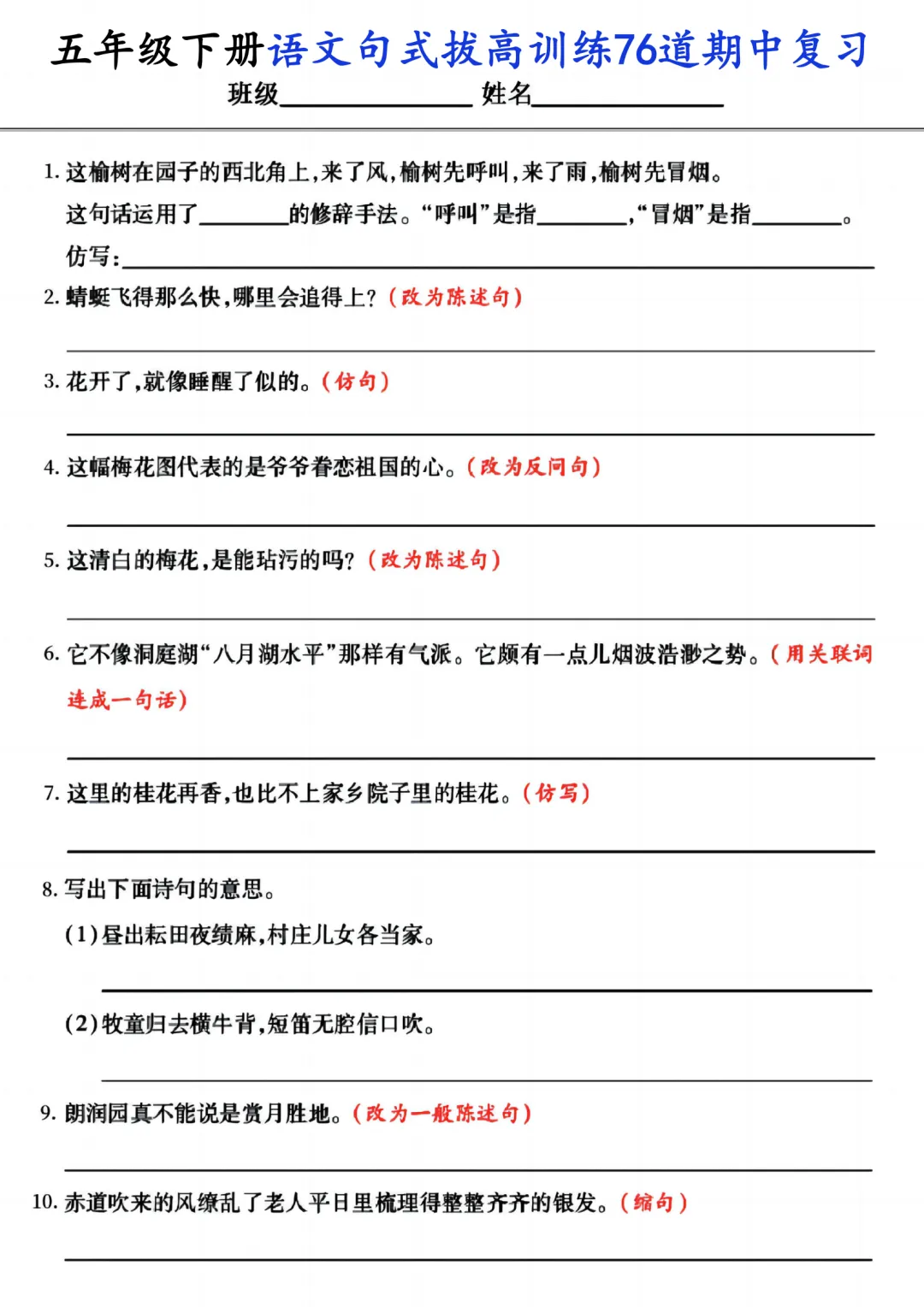 26春五年级下册语《期中复习专项押题版+句式拔高训练76道》含答案可打印